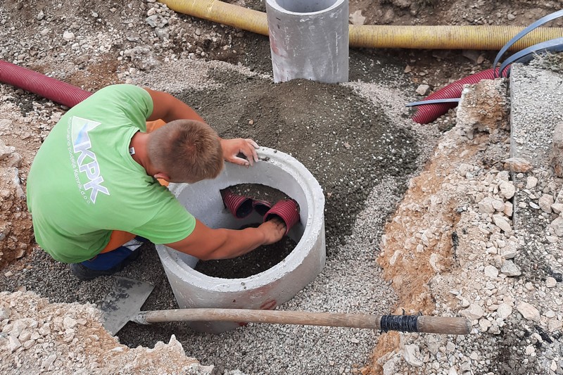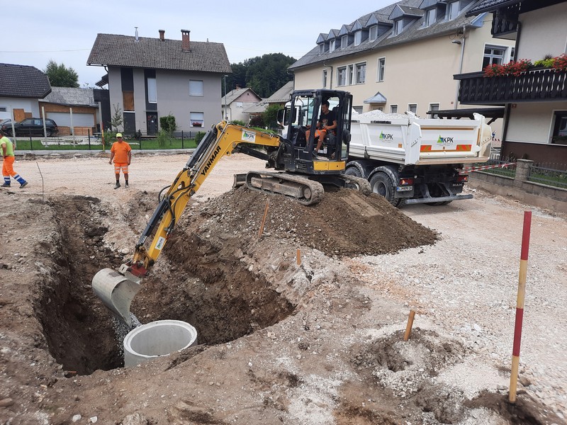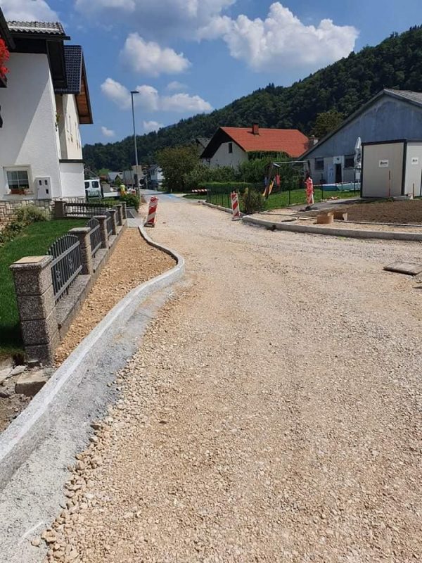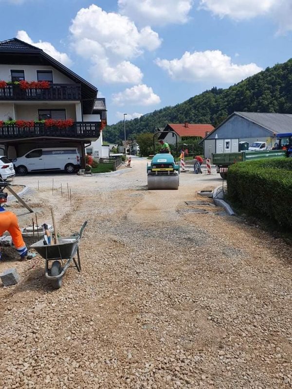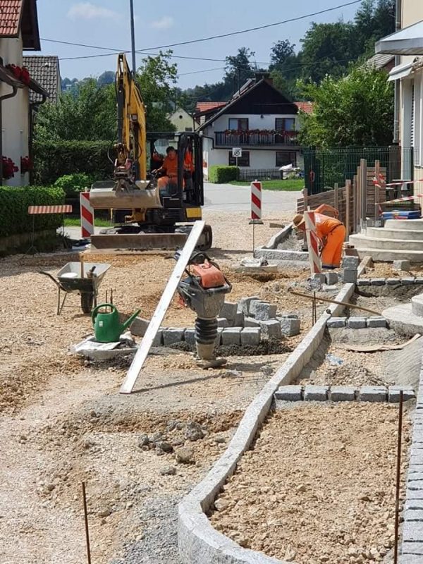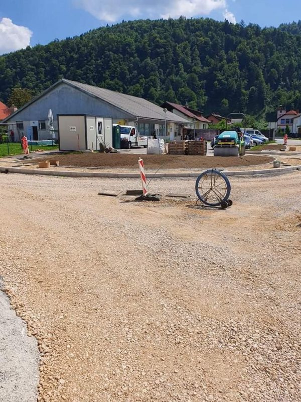 V Nevljah, v neposredni bližini šole in vrtca, napredujemo z izgradno krožišča, ki bo pripomoglo k umirjanju prometa na prometno izpostavljenem delu cestišča. Ekipa je že opravila izgradnjo meteorne kanalizacije, vodovoda in postavljanje robnikov. Trenutno se posveča nasutju cestnega dela in polaganju kock na pripadajočem parkirišču. Do sredine avgusta bosta potrebna še izvedba krožišča in talnih označb.