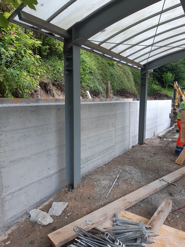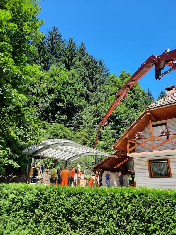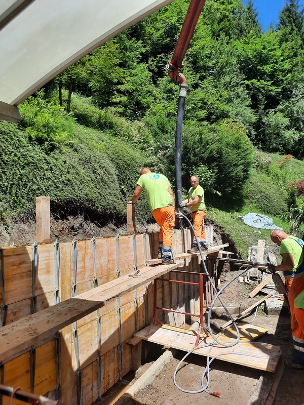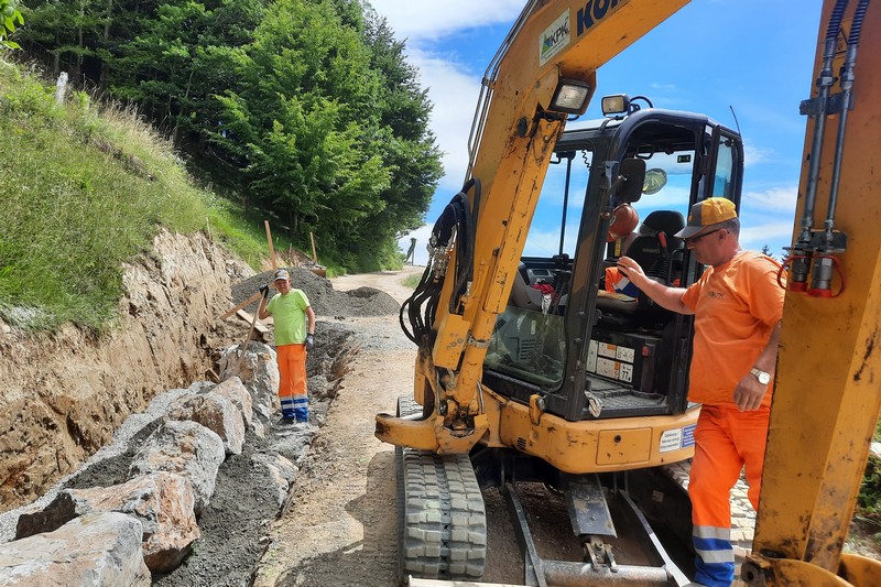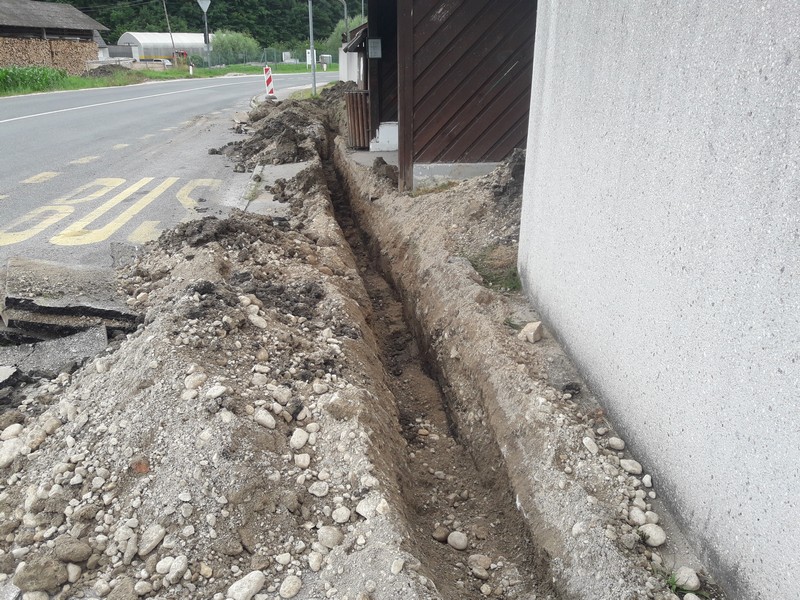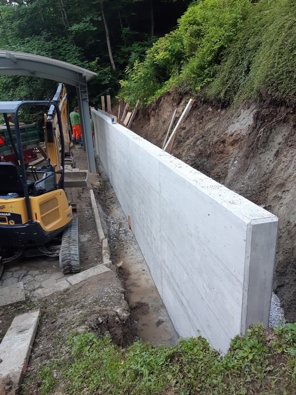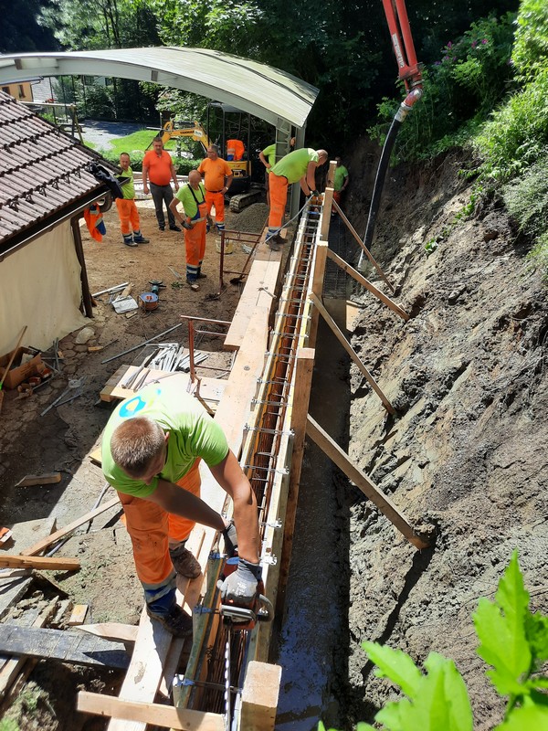 V prvi polovici meseca smo izvedli zaključna dela na Hribu, kjer po novem stoji betonski zid, ki bo preprečil premikanje plazu ob stanovanjski hiši. V sklopu del je bila izvedena tudi mulda, ki bo na lokaciji omogočala zadostno odvodnjavanje meteorne vode.