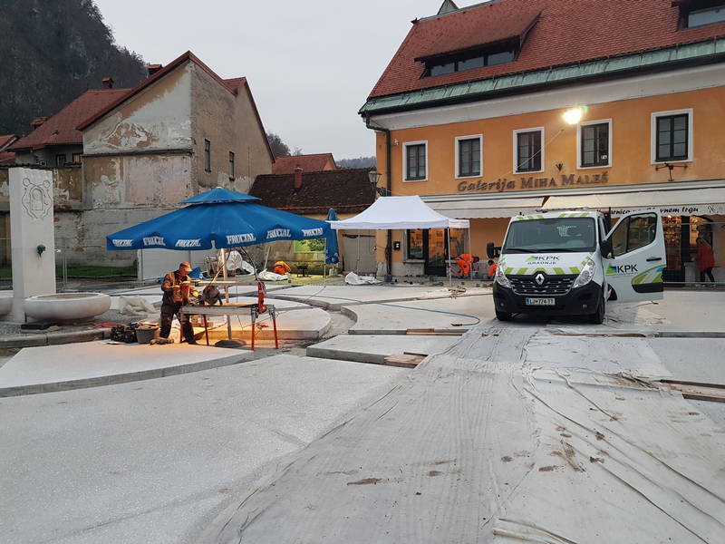 Dela na osrednjem kamniškem trgu se prevešajo v sklepno fazo, delavci Komunalnega podjetja so na trgu položili že večino izmed granitnih kock, tako da Glavni trg počasi že dobiva svojo končno, prenovljeno podobo.
