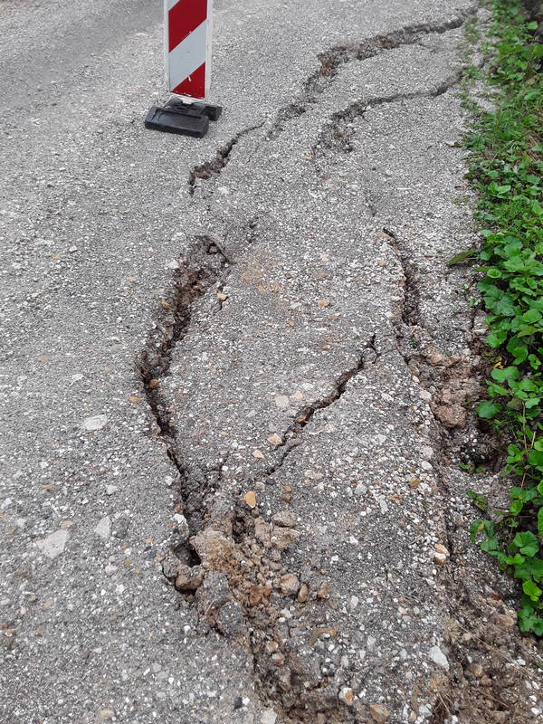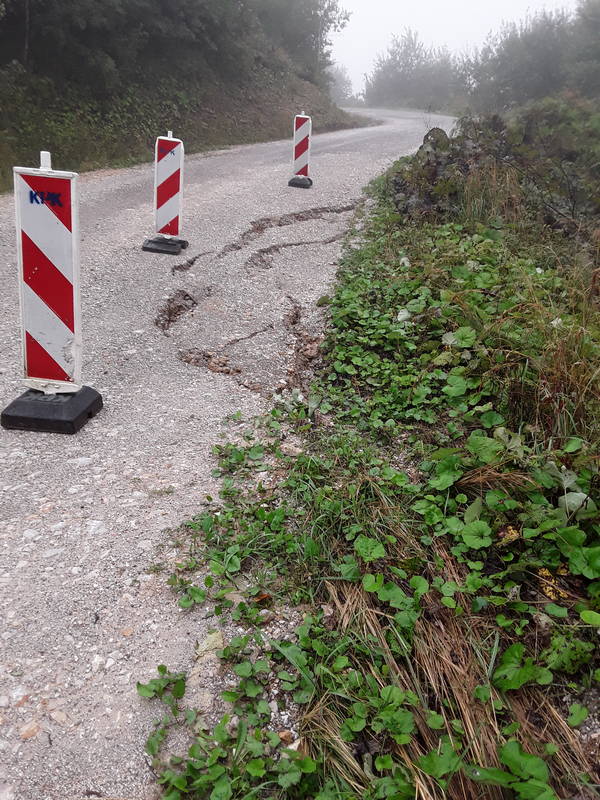 V sredini tedna smo bili znova priča plazenju terena. Tokrat je do plazenja prišlo na cesti Poljana – Črnivec, in sicer nad gostiščem, kjer je v noči na ponedeljek, v dolžini kakih 15 metrov, prišlo do večjega usada vozišča. Zaradi polzenja vozišča v dolino bo območje potrebno čim prej sanirati, naša ekipa pa je v vmesnem obdobju poskrbela za ustrezno zavarovanje problematičnega in nevarnega dela ceste.