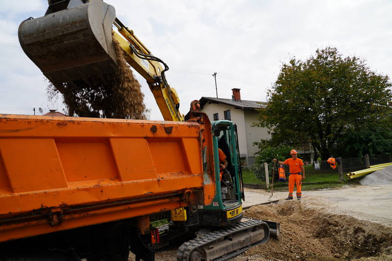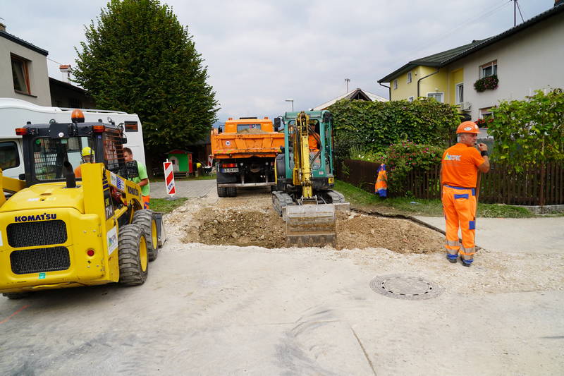 Dela so v preteklem tednu nadaljevala tudi v Šmarci, kjer se, sočasno z izgradnjo kabelske kanalizacije, na Habjanovi ulici obnavlja še vodovodni sistem.