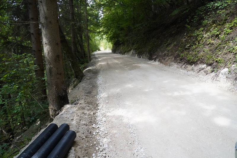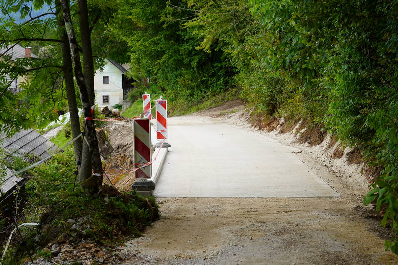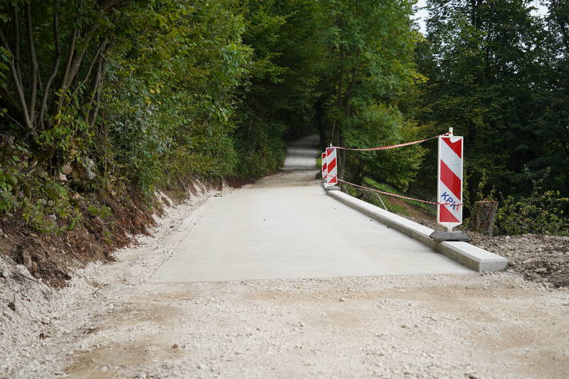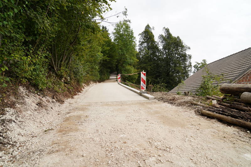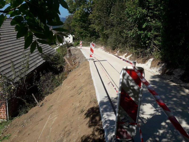 Sanacijska dela so se nadaljevala tudi na delu ceste med Špitaličem in Okrogom, kjer je bila v prejšnjem tednu izvedena drenaža meteornih vod, obnovljeno cestišče pa je že pripravljeno za končno asfaltiranje.