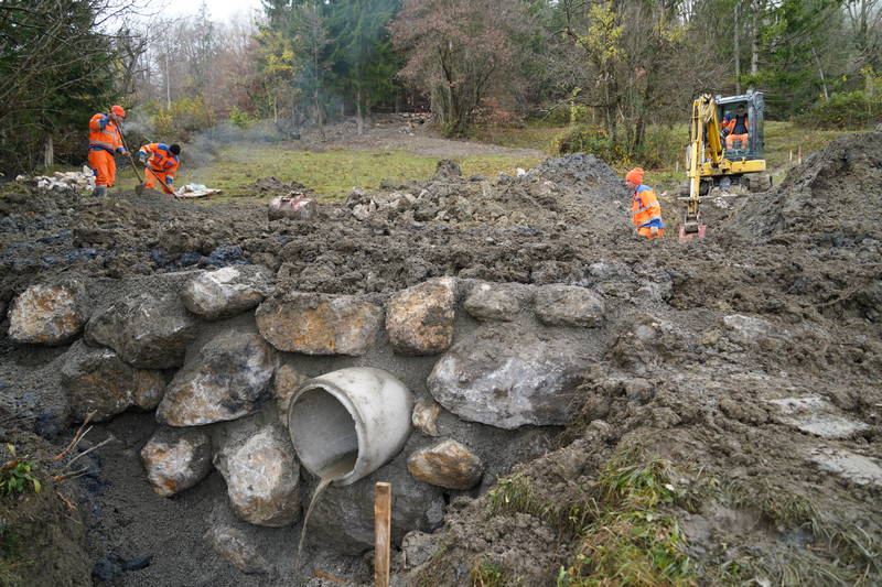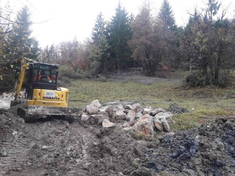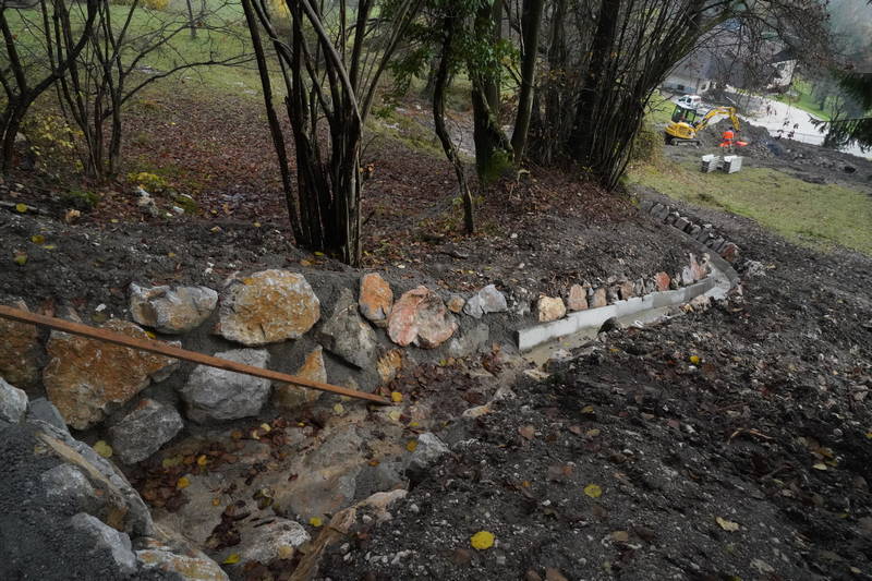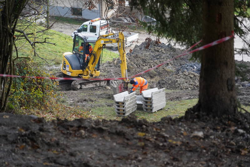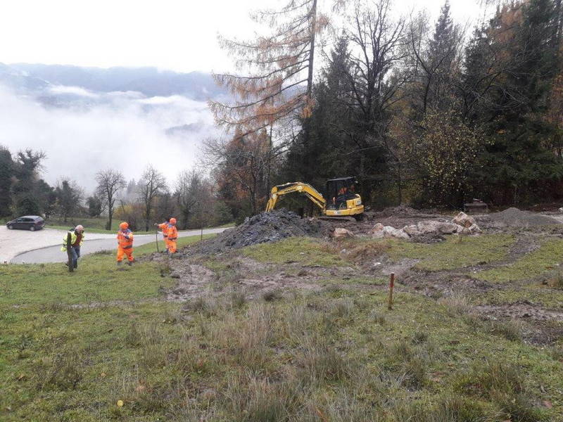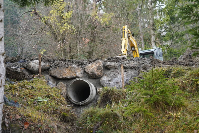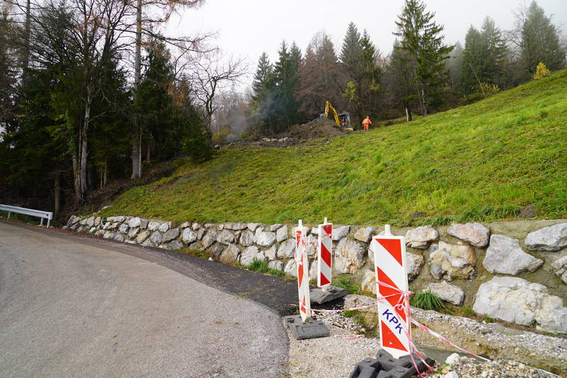 Na cesti Markovo – Studenca so delavci Komunalnega podjetja Kamnik nadaljevali tudi z urejanjem ceste in odvodnjavanja s polaganjem kanalet in izgradnjo umirjevalnih jaškov za meteorno vodo, dela pa, kljub zahtevnemu terenu in obilici blata, s katerim se soočajo delavci na terenu, opazno napredujejo.