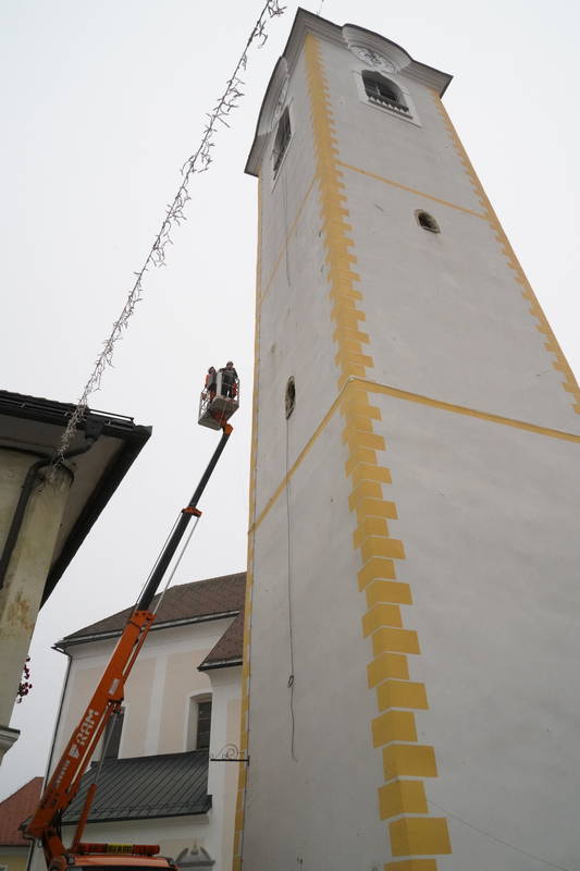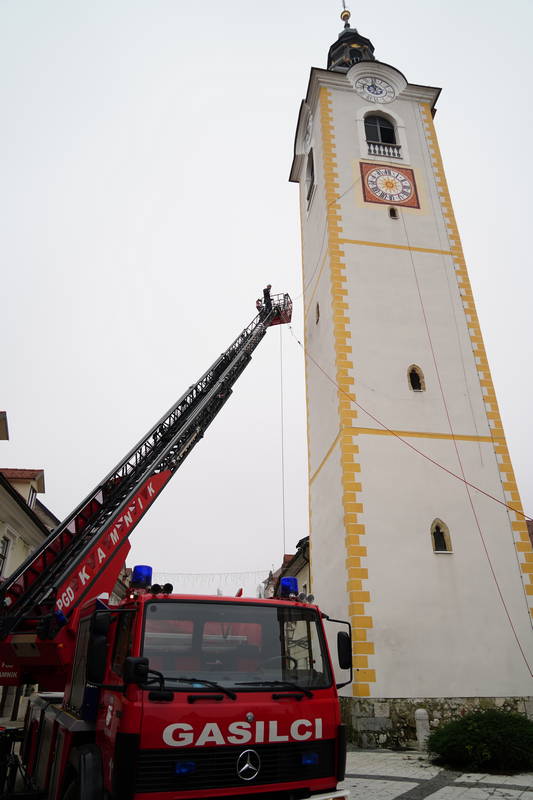 Lučke bodo letos, kot zanimiva in dobrodošla novost, zasvetile tudi z zvonika na Šutni, kjer so jih, ob pomoči gasilske lestve PGD Kamnik in za delo na višini usposobljenih delavcev, delavci Komunalnega podjetja Kamnik namestili na današnjo nedeljo.
