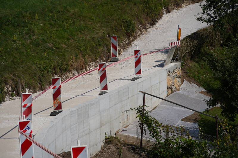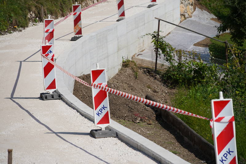 Delavci KPK so v minulem tednu nadaljevali tudi s sanacijo usada ceste. Dela so povečini že zaključena, saj so bili, razen opornega zidu in novega nasutja, zgrajeni tudi kamniti krilni zidovi, vozišče je bilo utrjeno s tamponom, izvesti pa je potrebno zgolj še pripravo na asfalt in asfaltiranje.