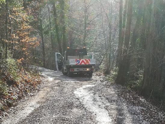 - Krpanje udarnih jam na makadamskih cestah: Potok, Kostanj, Bistriška, Primoževa