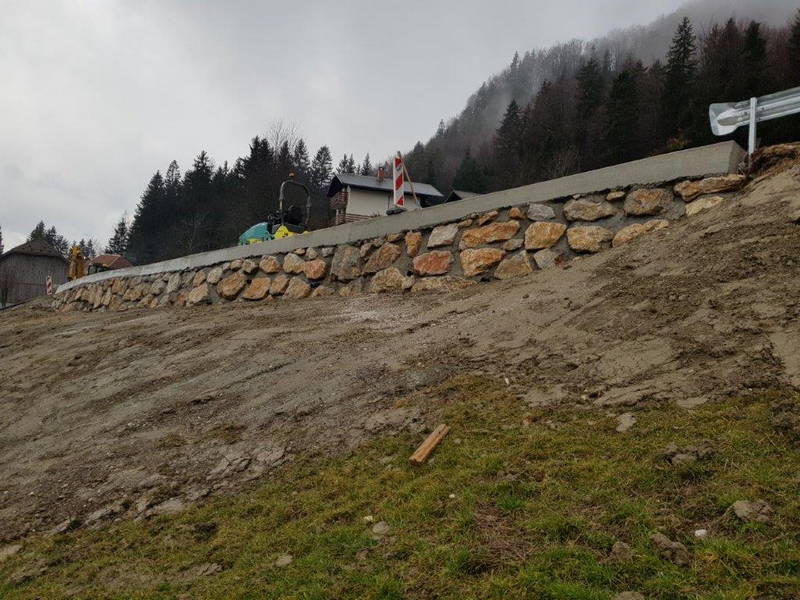 Domala pri kraju so tudi sanacijska dela na usadu ceste, ki iz Laz vodi proti Vrhaču, kjer je kamnito-betonski zid v minulem tednu dobil še robni venec.