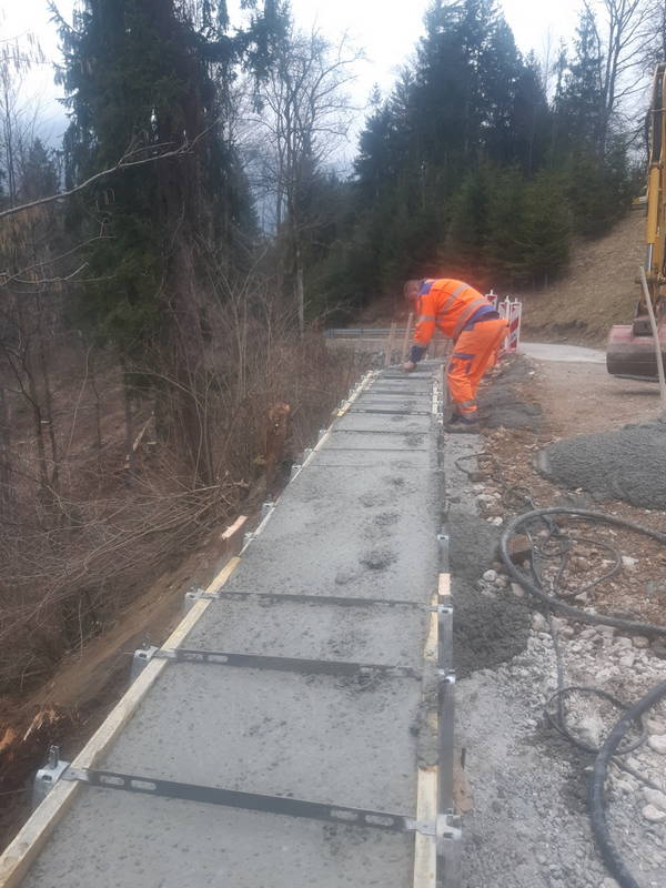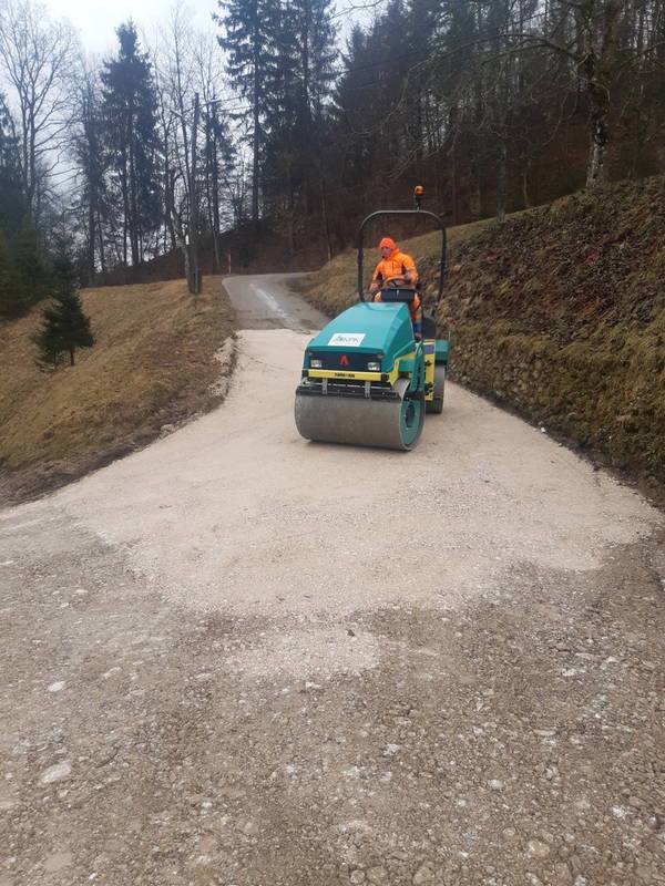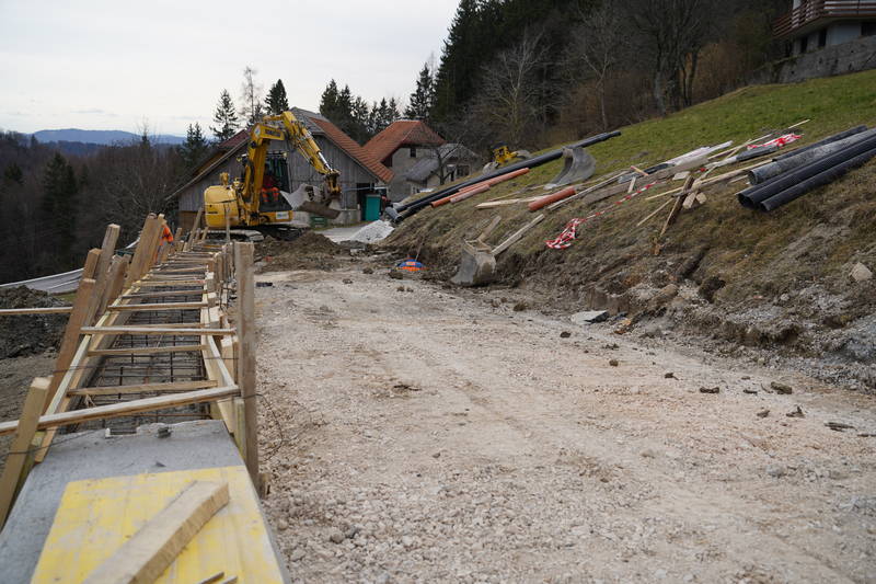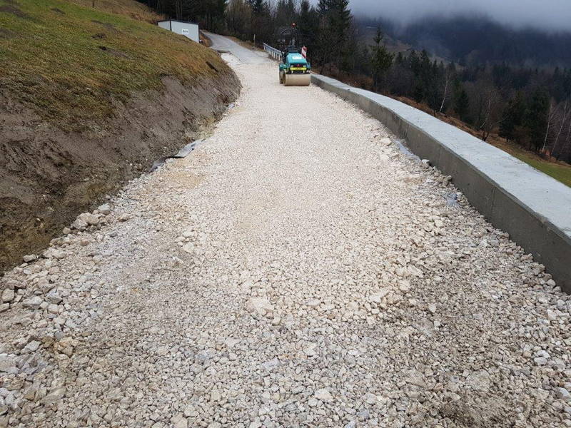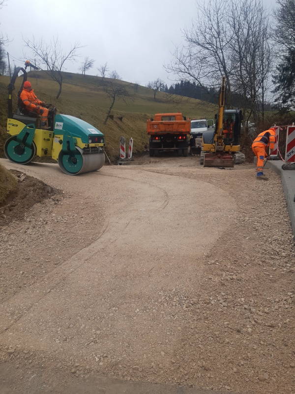 Na Ravnah se je nadaljevala sanacija cestnega usada. Oporni zid je bil zgrajen že prejšnji teden, v minulih dneh je bilo poskrbljeno še za izvedbo drenaže in cestišča, izvedena pa je bila tudi priprava na asfaltiranje.