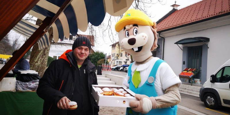 Minuli teden pa polno zaposleni niso bili zgolj delavci Komunalnega podjetja Kamnik, saj je imel obilo dela tudi Kopko, ki je na pustni torek s krofi najprej razveselil komunalne delavce na aktivnih gradiščih, nato pa, v slogu: ‘Od hiše do hiše, od vrat do vrat, prinašamo vam veselo pomlad’, krofe dostavil še na kamniško urgenco, tržnico, policijsko postajo, gasilski dom in celo v urad župana.