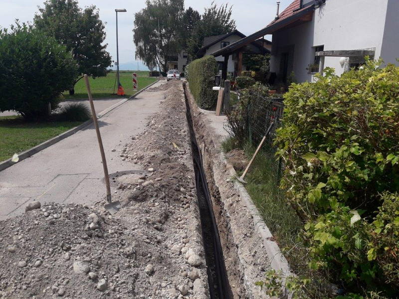 V Šmarci gradbene ekipe KPK nadaljujejo z izgradnjo kabelske kanalizacije za širokopasovne povezave in priključkov. Na Bistriški ulici je bilo že izvedeno asfaltiranje prekopov, dela pa se nadaljujejo na območju Trate, Trga padlih Borcev in na Pibernikovi ulici.
