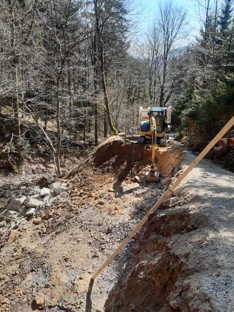 Nekoliko večjo angažiranost naše gradbene ekipe zahteva sanacija usada v Motniku, kjer bodo naši delavci postavili 18 m dolg in kar 6 m globok podporni zid. Prvi rezultati del se že kažejo v obsežnih terenskih izkopih, z zidanjem podpornih temeljev pa bodo fantje pričeli v ponedeljek.