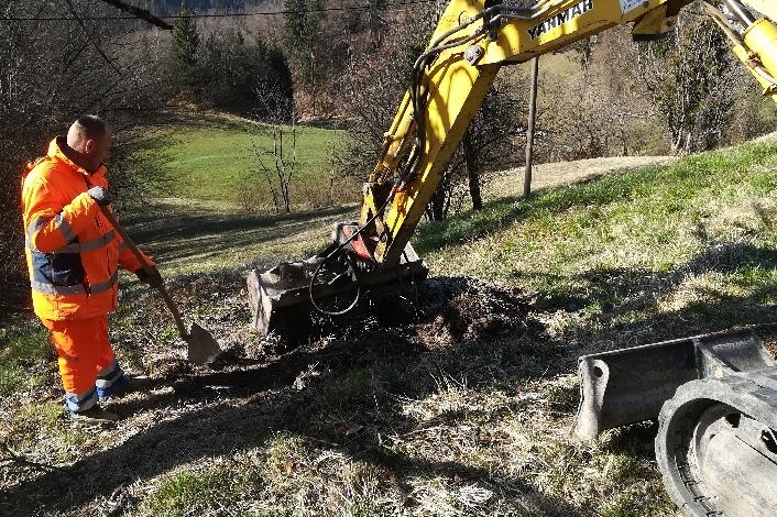 Še en sončen teden smo izkoristili predvsem za izvajanje rednih vzdrževalnih del. Napredujemo z deli na usadih v malem Rakitovicu in v Motniku, asfaltiramo prekope ter rešujemo intervencijske primere. Lotimo se tudi urejanja zasebnih dvorišč, izvajamo in obnavljamo hišne priključke.