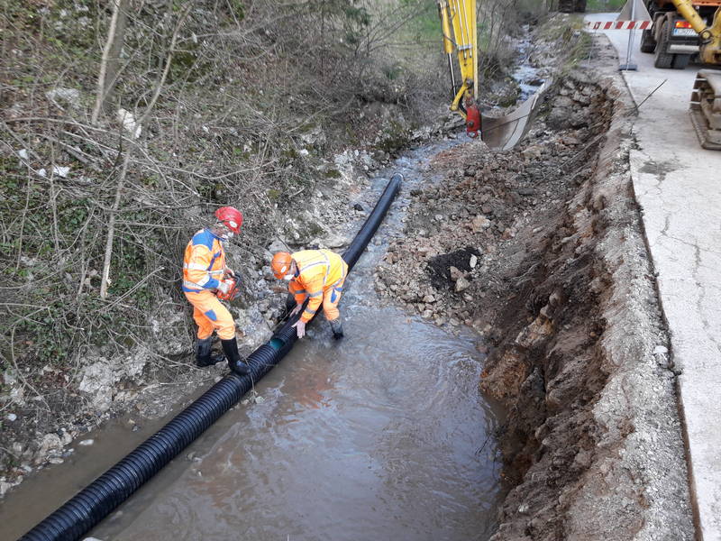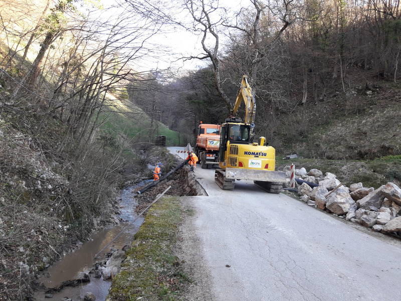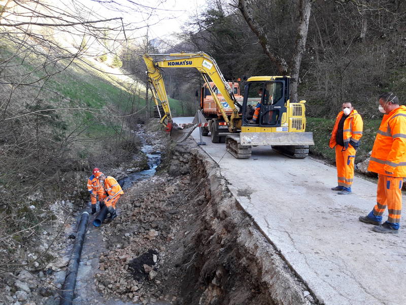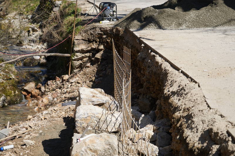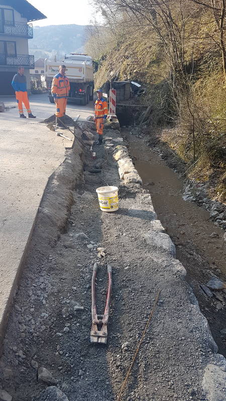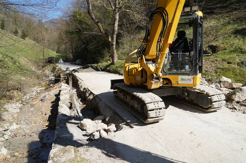 2. teden aprila je, poleg odličnih vremenskih pogojev, prinesel tudi dejansko udeležbo na gradbiščih. Nadaljujemo z deli v višjih predelih v Zgornjem Tuhinju, kjer bo izvedba usada terjala večtedensko prisotnost naše ekipe. Štartali smo z gradbenimi deli v dolini, kjer se mudimo na asfaltiranju prekopov.