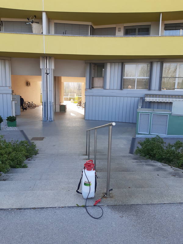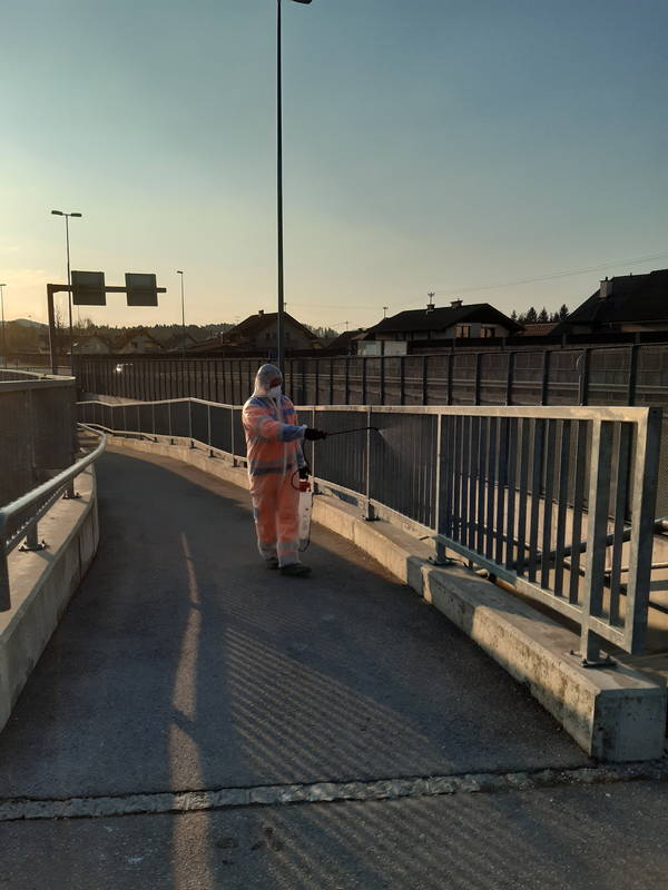 Stalnica naših del je v zadnjem obdobju postala tudi dekontaminacija. Še vedno se do nadaljnjega, skladno z navodili Občinskega štaba civilne zaščite, izvaja dezinfekcija javnih in zasebnih površin. Zadnji poseg je bil narejen danes navsezgodaj zjutraj, ko so bile še pred uradnim začetkom prazničnih dni, ko se vsemu navkljub pričakuje nekoliko večja obljudenost določenih lokacij, dekontaminirane zasebne površine.