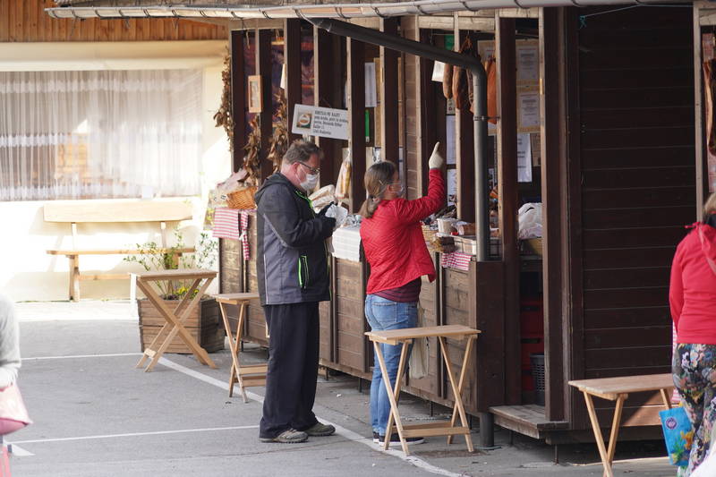 - Obvezno je razkuževanje rok pri vstopu na tržni prostor in nošenje zaščitne maske, tako za prodajalce kot tudi za kupce.