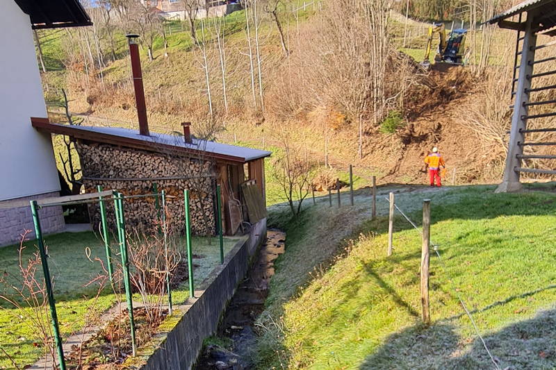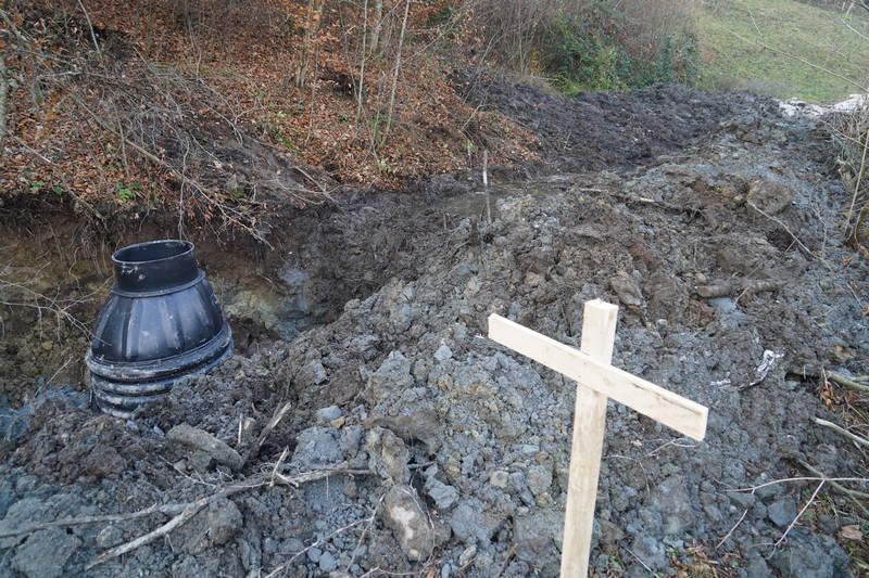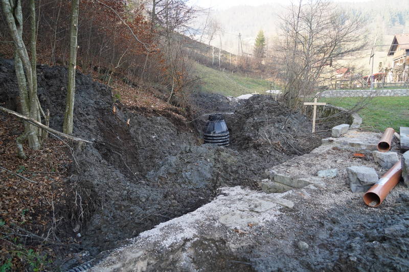 Na precej zahtevnem, močvirnatem in strmem terenu Markovega smo v tem pričeli z izvedbo fekalne kanalizacije. Z deli se bo potrebno prebiti vse tja do Porebri, kjer bo z izgradnjo kanalizacije končno mogoč priklop odročnejšim odjemalcem. Gradbena ekipa je v tem tednu izvajala izkop, polaganje kanalizacije in poskrbela za sprotno zasipanje terena, pri delu pa se je, zaradi vode in velikih količin domala živega blata, ki je zahtevalo tudi utrjevanje strojnih dostopov do močvirnega zemljišča z velikimi hlodi, soočala s kar precejšnjimi težavami, ki pa jih je, z nemalo truda in volje, nenazadnje pa tudi z moralno in »kofetkarsko« pomočjo tamkaj živečih občanov, uspešno premostila.