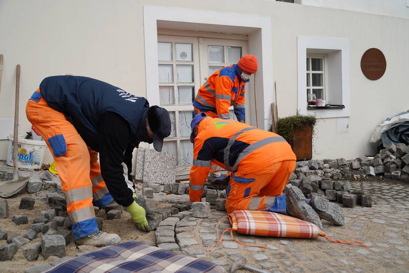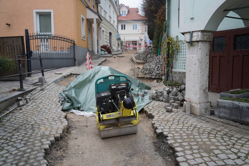 Na Sadnikarjevi ulici so podzemna dela končana. V tem tednu se je že začelo s tlakovanjem ulice, ki pa je, zaradi ohranitve kulturne dediščine starega mestnega jedra in upoštevanja vzorca polaganja, sicer nekoliko bolj zamudno in počasno.