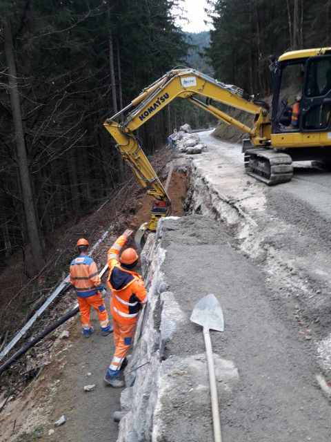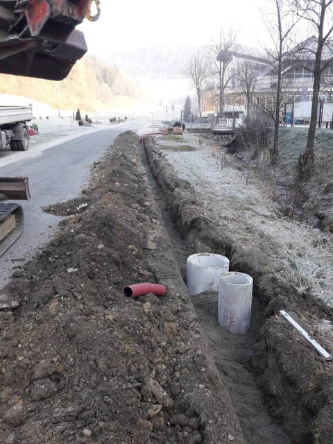 Za nami je še en mrzel, vseeno pa delovno uspešen teden. Trenutno imamo odprtih kar šest gradbišč, saj smo v tem tednu pričeli z deli še na dveh dodatnih lokacijah, in sicer v Markovem, kjer se delovna ekipa pri gradnji novega kanalizacijskega omrežja spopada z zelo težkimi delovnimi pogoji, ter v Srednji vasi, kjer bo zgrajena nova meteorna kanalizacija. Precej pred predvidenim rokom pa smo v tem tednu skoraj povsem dokončali s prenovo dela ceste skozi Podgorje, ki je bila v petek že na novo asfaltirana.