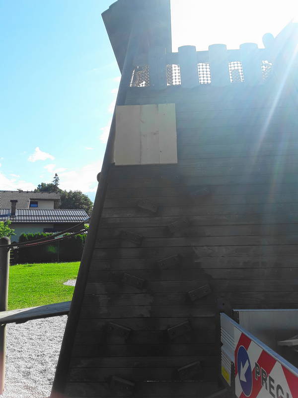 Opravila v Keršmančevem parku so bila tokrat drugačne narave. Poskrbeli smo za zavarovanje nevarnih delov največjega igrala in ureditev betonskih jaškov.