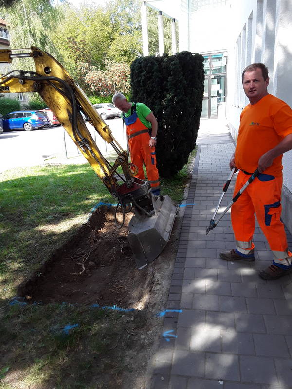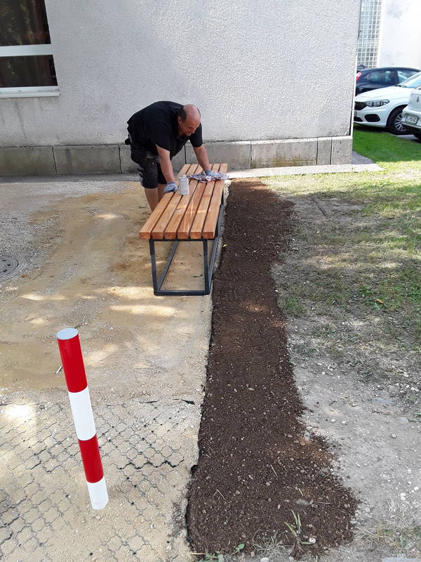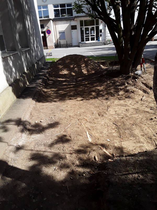 V tem tednu smo izvajali tudi pripravo terena na montažo novih klopi – počivališča na Kajuhovi cesti, neposredno ob Knjižnici Franceta Balantiča Kamnik. V okviru del je bilo potrebno nasutje tampona, polaganje travnih plošč in postavitev stebričkov. Nove klopi, ena kotna in dve samostojni, so že na uporabo.