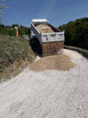 Saniranje cest je še vedno ena izmed prioritet letošnje pomladi. Nadaljujemo z deli na cestah Žaga – Podstudenec (230 m) ter na cesti v Laniše – Stolnik (115 m), kjer je imel z namenom utrjevanja obeh cest glavno vlogo igral gredar.