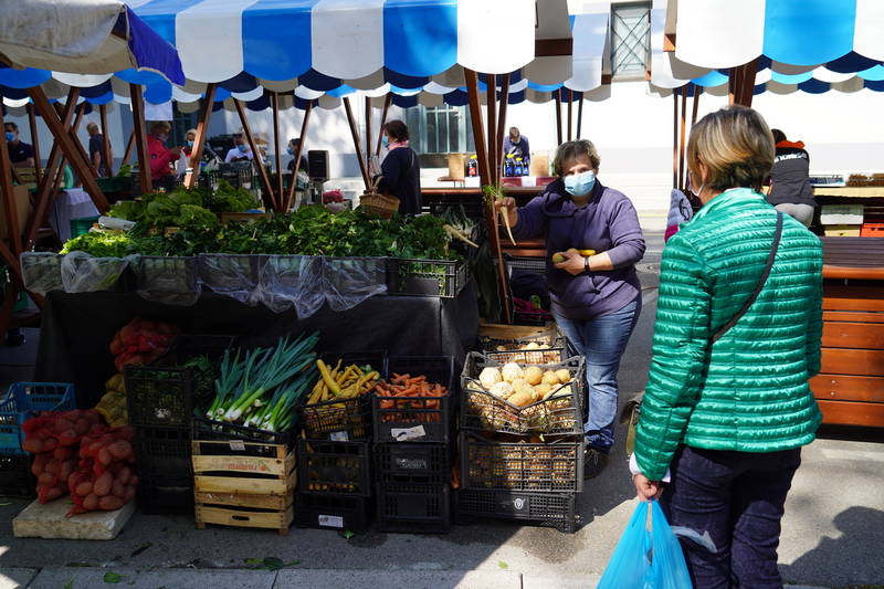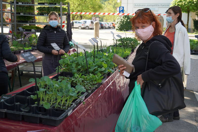 Že dva tedna vnovično živi kamniška tržnica. Ekipa Komunalnega podjetja Kamnik pri pripravi tržnega prostora do nadaljnjega upošteva vsa navodila, vezana na preprečevanje okužbe s koronavirusom. Četudi z maskami in ob varnostni razdalji, je utrip na tržnem prostoru že tisti pravi.