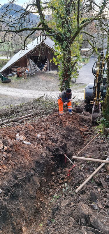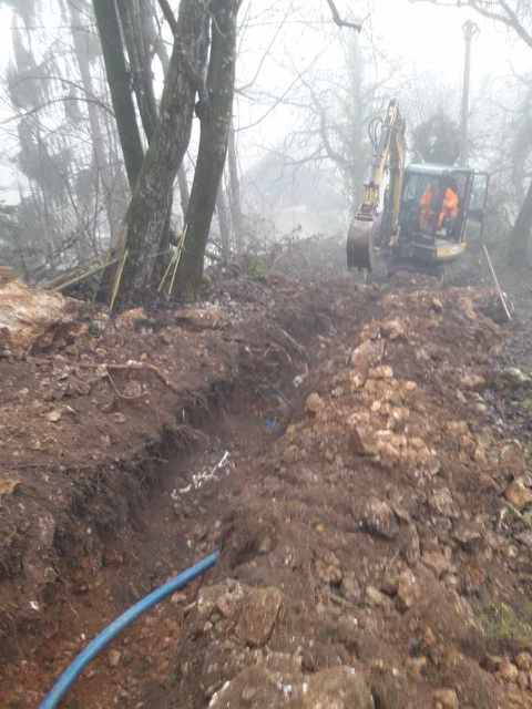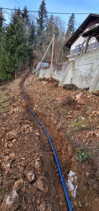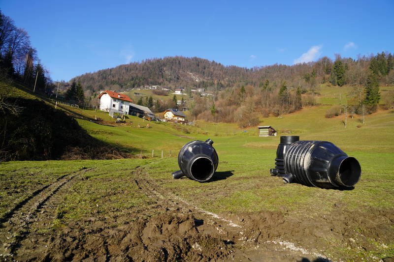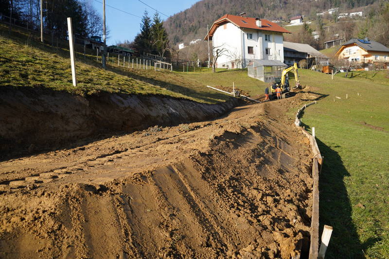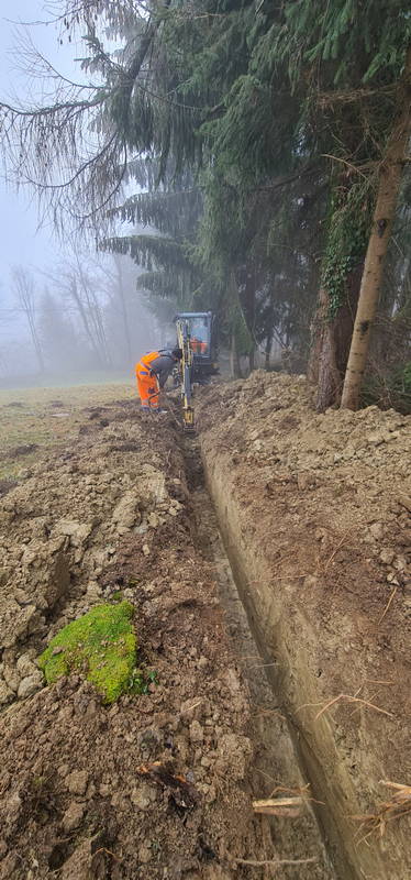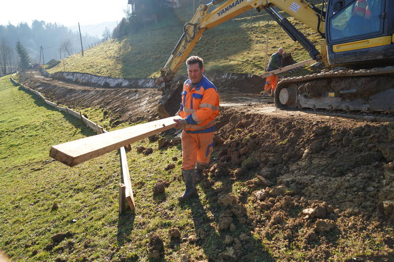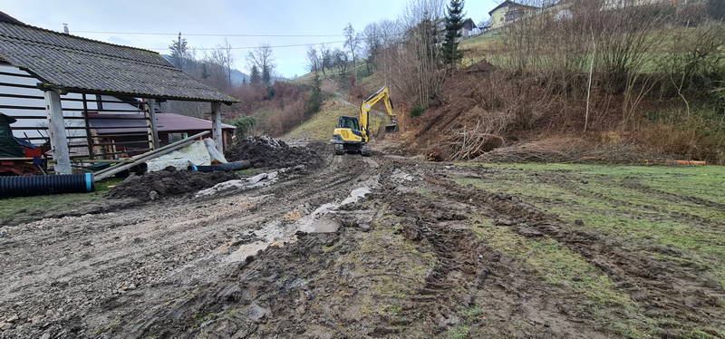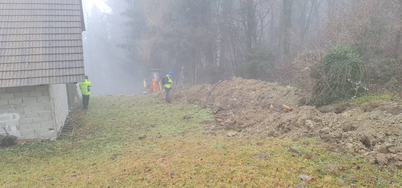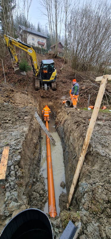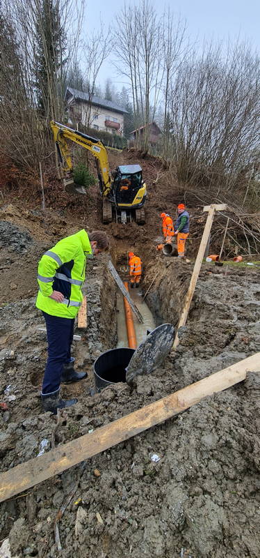 Na Markovem, kjer na zahtevnem terenu gradimo novo fekalno kanalizacijo, dela še potekajo. Delovni pogoji na strmem in blatnem terenu, ki od naše prizadevne gradbene ekipe zahteva nemalo pazljivosti in previdnosti, sicer res niso idealni, vendar dela kljub temu lepo in vidno napredujejo, upamo pa, da so najhujše težave že za nami.