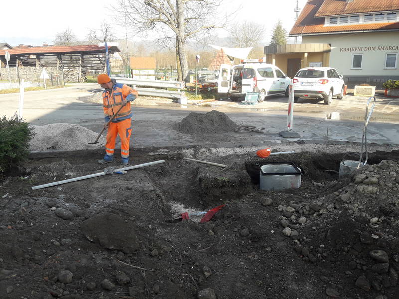 V tem tednu se ekipa Komunalnega podjetja Kamnik mudi tudi v Šmarci, kjer se bodo v dveh fazah izvajala dela na območju Trga padlih borcev. Izvaja se menjava robnikov in pripravlja vse potrebno za postavitev javne razsvetljave v sklopu izvedbe novega prehoda za pešce. V tem tednu je naša ekipa položila zaščitne cevi za visoko napetost, že izvedenim delom pa sledijo še druga dela, med katerimi so tudi postavitev temeljev za zastave, nižanje hodnika za pešce in asfaltiranje dela ceste.