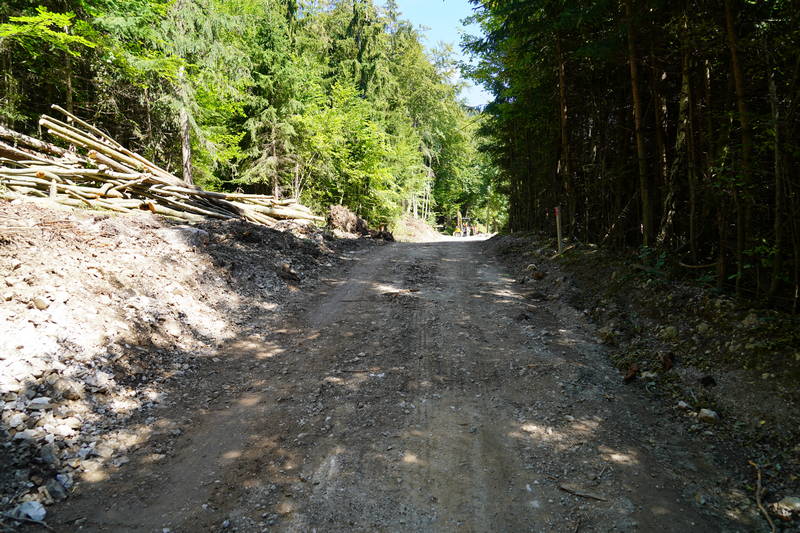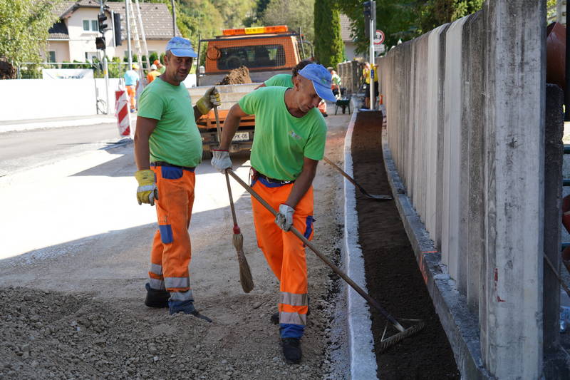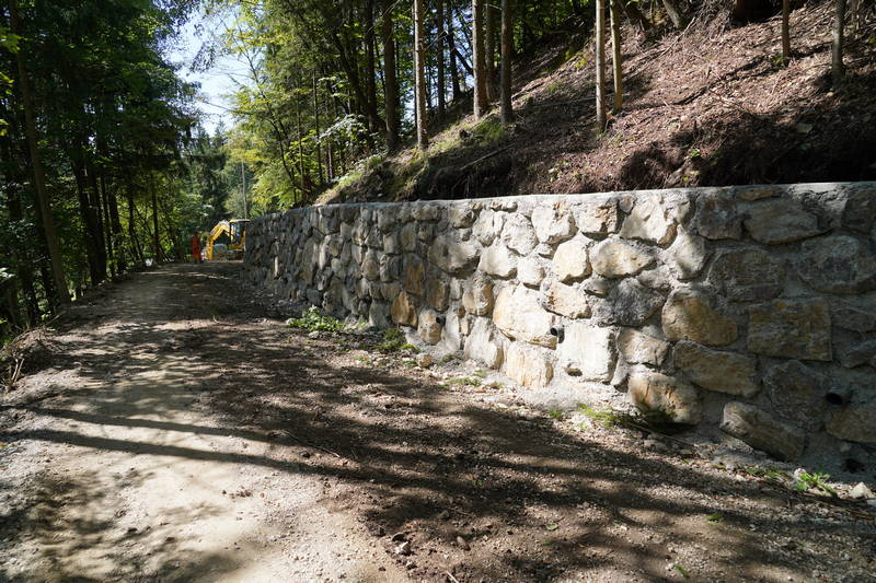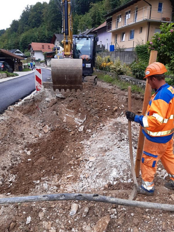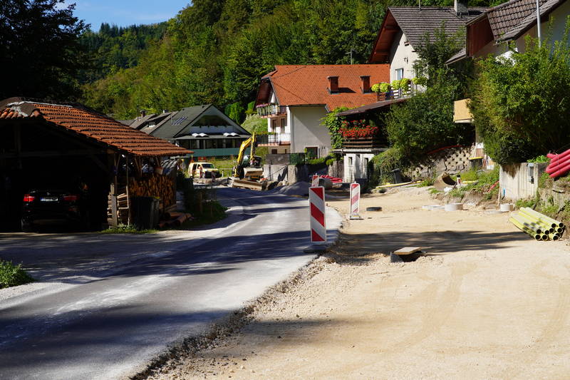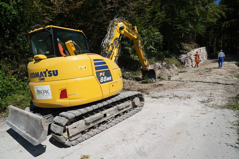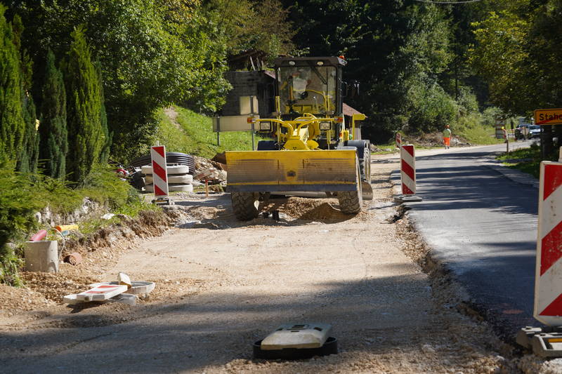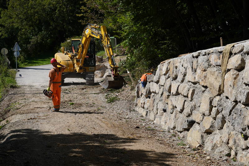 Dela minulega tedna so temeljila predvsem na izkopu in porezu brežin, sečnji grmovij, dreves in odvozu materiala. Izvedli sta se zakoličba ceste in določitev višin, z izkopom temeljev, pa se že izvaja tudi izgradnja drugega opornega zidu oz. kamnite zložbe, ki bo cesto varovala pred podori.