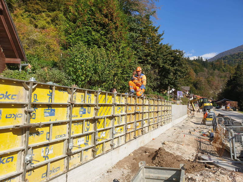 Štartali smo konec januarja v Ravnah in zaključili decembra v Kranjskem Raku. Skupno smo postavili 10 opornih zidov iz kamnitih zložb in sanirali več 100 km cest.