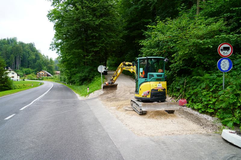 Na Žalah oz. Milem vrhu je gradbena ekipa nadaljevala s sanacijo cestnega usada. Dela so v grobem že končana, saj je nov oporni zid že narejen, do konca pa je potrebno urediti še samo cestišče.