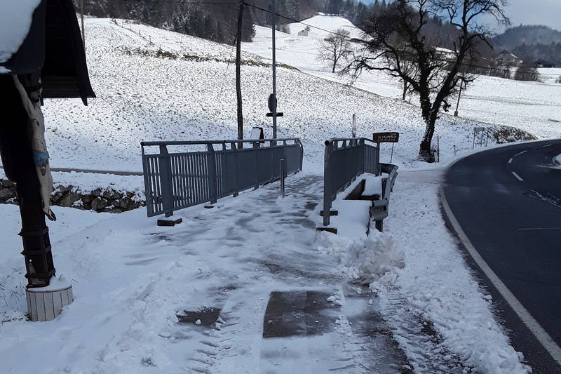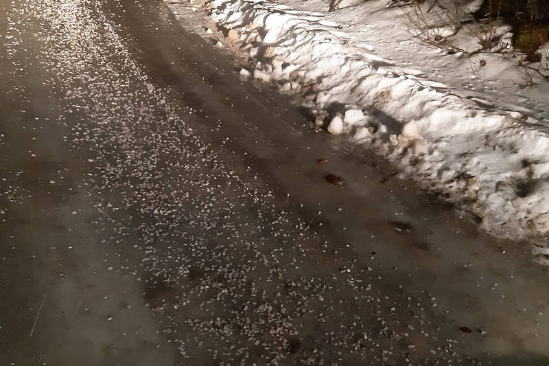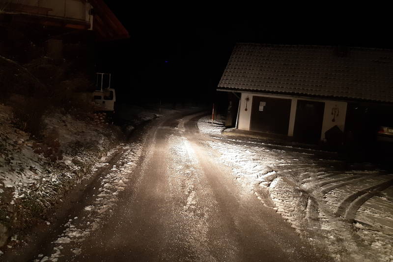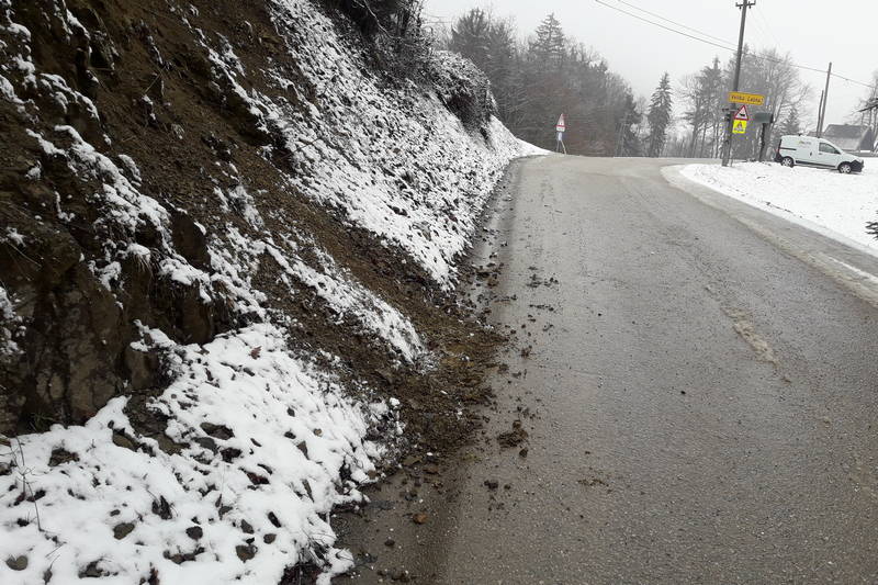 Če je odjuga poskrbela, da s cest ni potrebno orati snega, pa je zato marsikje potrebno s cestišč odstranjevati kamenje, ki kaj lahko nevarno ovira cestni promet. V tem tednu ga je kar nekaj ga je pristalo na cesti na Gozdu in v kraju Slape – za očiščenje obeh cest pa so poskrbele naše službe.