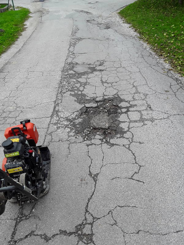 Več pozornosti od makadamskih so v tem tednu potrebovale asfaltne ceste. Udarnim jamam ni videti konca. Naši vzdrževalci so tako zakrpali luknje v Nevljah, v Veliki Lašni, na zbirni cesti najdaljše občinske vasi – v Podgorju in na cesti Češnjice – Okrog.