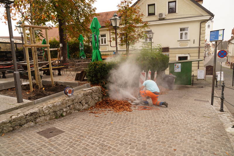 Skladno z načrtom obnove in terminskim planom se je nadaljevala tudi sanacije odseka ceste na Novem trgu, kjer so bili v minulem tednu postavljeni temelji za svetilke, položeni tlakovci in izvedena priprava na asfaltiranje, sama ulica pa je bila tudi že na novo asfaltirana s plastjo grobega in finega asfalta.