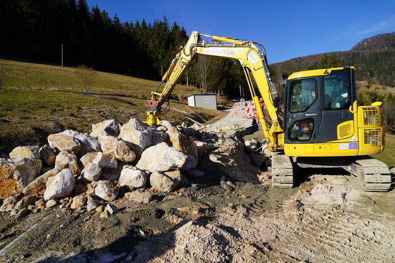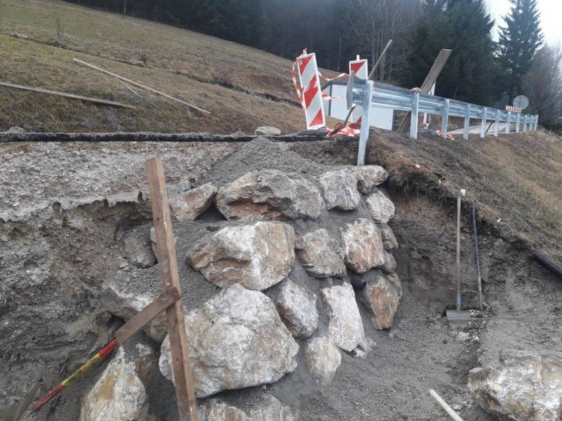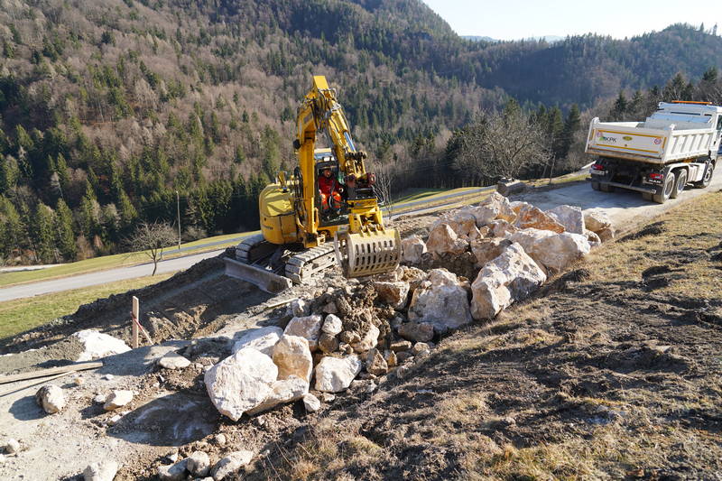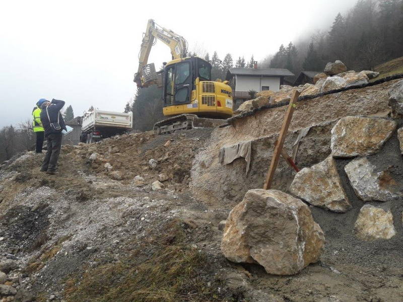 V prejšnjem tednu so delavci Komunalnega podjetja Kamnik pričeli s sanacijskimi deli cestnega usada na Ravnah, pri čemer je bil izveden izkop in odvoz odvečnega materiala, odstranjen del asfalta in zgrajen že prvi del kamnite zložbe. Dela lepo napredujejo, predvidoma pa bodo trajala slab mesec.