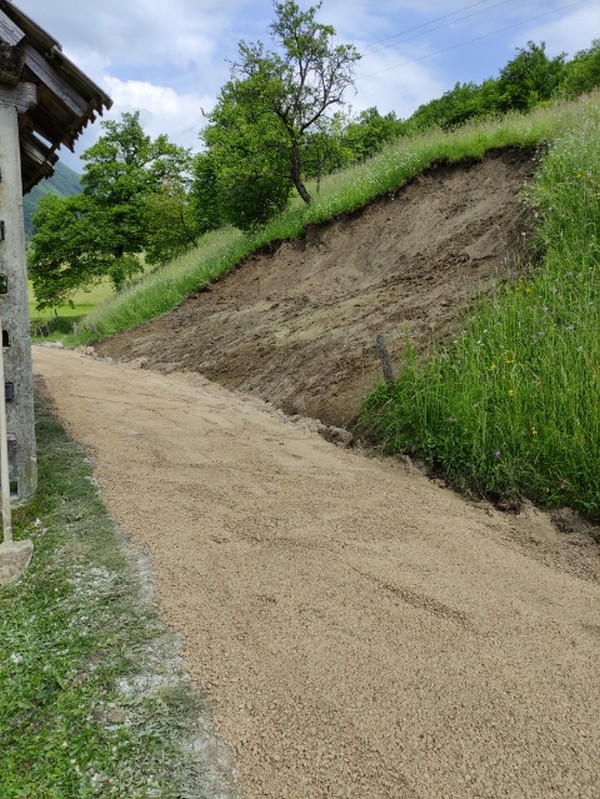 Usadi so v naši občini stalnica. Konec meseca maja smo poročali o izvedbi usada na Hribu. Zaradi neugodnih vremenskih razmer smo zaključna dela prestavili v mesec junij. Za ureditev dodatnega odvodnjavanja, izvedbo obcestnih kanalet in planiranje zemlje to pot ni bilo ovir.