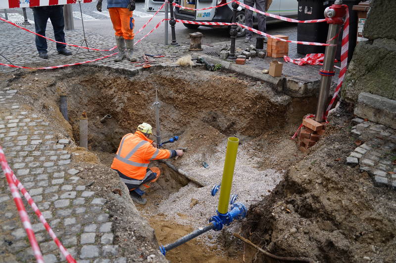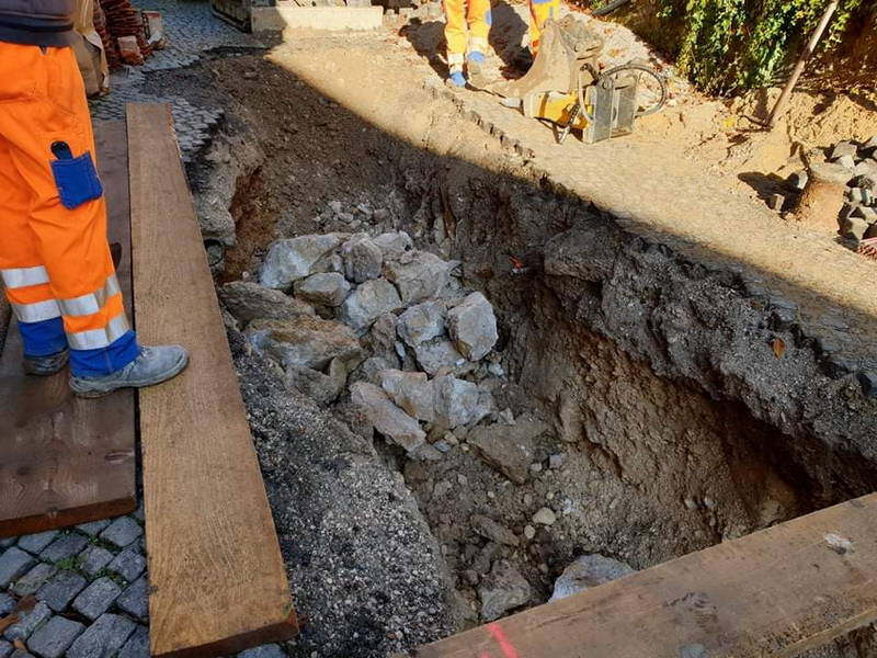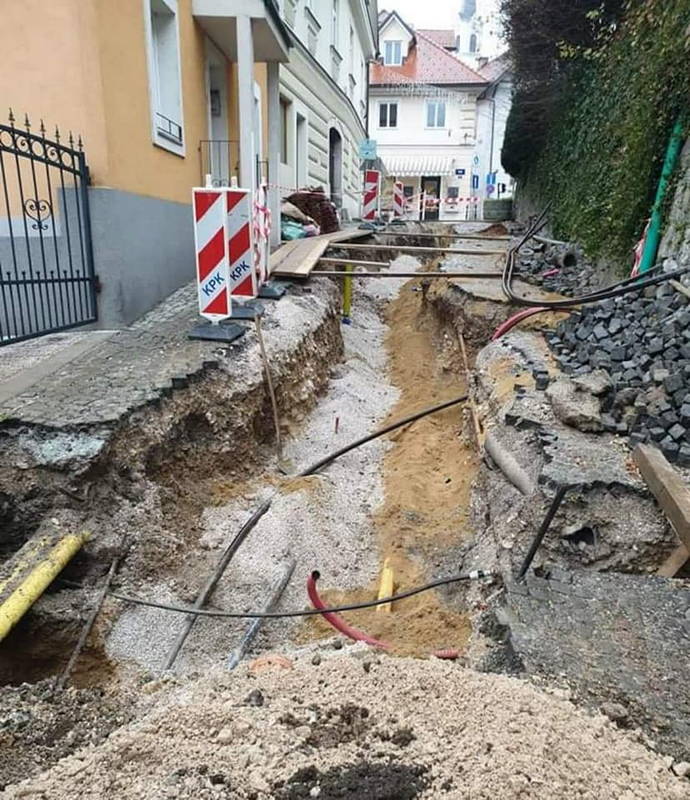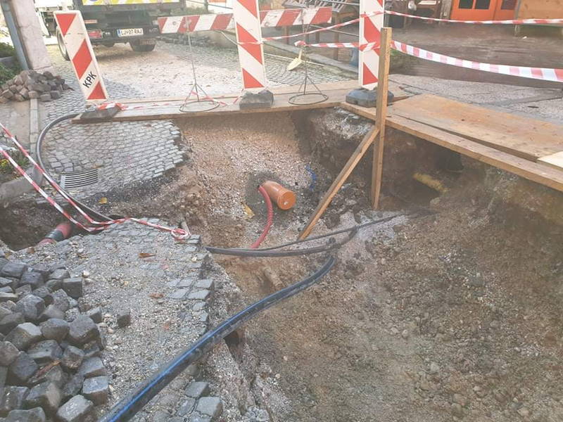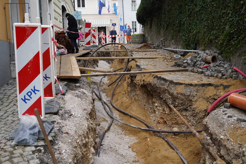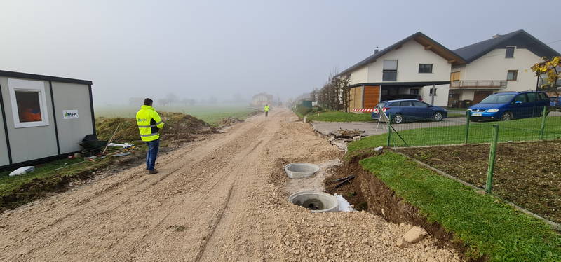 Pred začetkom del je bila urejena zapora, dela pa so se začela z izkopom in polaganjem cevi za javno razsvetljavo, valjanca ter jaškov.