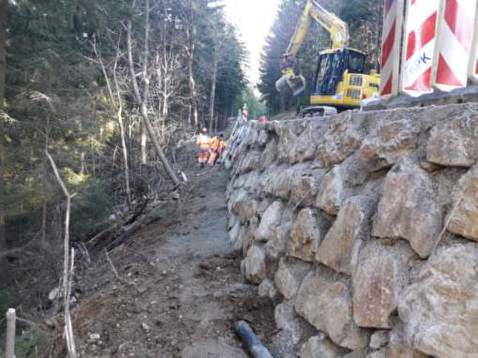 Na Kranjskem Raku so od konca tedna misli usmerjene v izvedbo zadnjega, že tretjega opornega zidu. Dva, v dolžini 40 in 17 metrov, že stojita, za zadnjega, ki bo prav tako dolg 17 m, pa sta bila že opravljena izkop že zahteval izkop in izgradnja kamnite zložbe. V končni fazi projekta sledi še še postavitev odbojnih ograj in zamenjavo asfalta, ki bo predvidoma položen do začetka decembra.