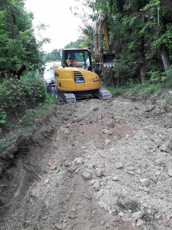 Nadaljevali smo z deli na drugi še nedokonačni cesti Stolnik – Laniše, kjer smo v tem tednu z zemeljskimi deli pripravili vse potrebno za njeno dokončanje. V ponedeljek se bo, če bo vse po sreči, izvajalo asfaltiranje, tamkajšnjim občanom pa bo tako prihranjena marsikatera sitnost, ki jih sicer prinašajo makadamske ceste.