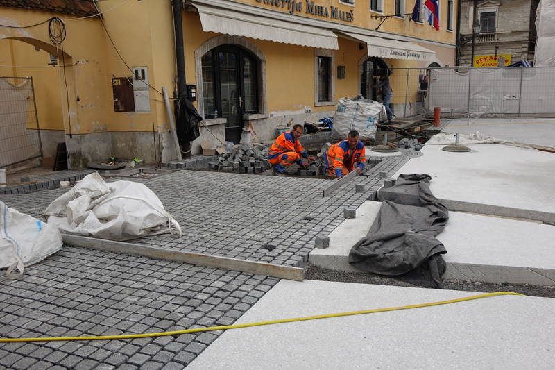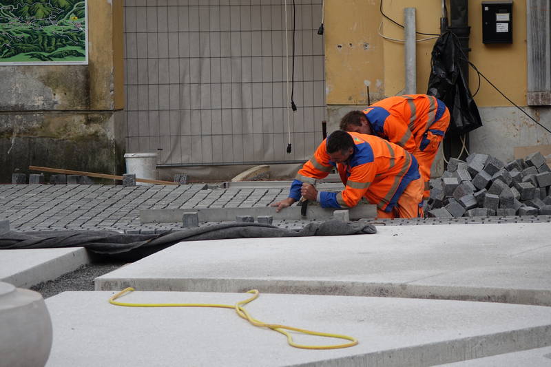 Na kamniškem Glavnem trgu so se tudi v preteklem tednu pospešeno nadaljevala prenovitvena dela osrednjega kamniškega trga. Štokanje armirano betonskih nosilnih plošč je končano, položenih pa je bilo tudi že precejšen del granitnih kock.
