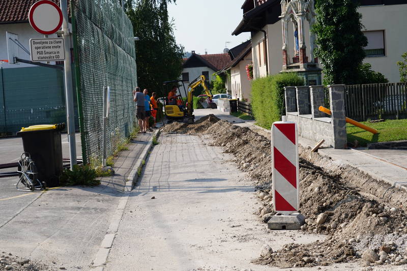 Živahen delovni utrip je že kar nekaj časa zaznati tudi v Šmarci, kjer se nadaljujejo dela izgradnje kabelske kanalizacije. Marsikje je le-ta že dokončana, tako da so na posameznih ulicah prekopi tudi že na novo asfaltirani.