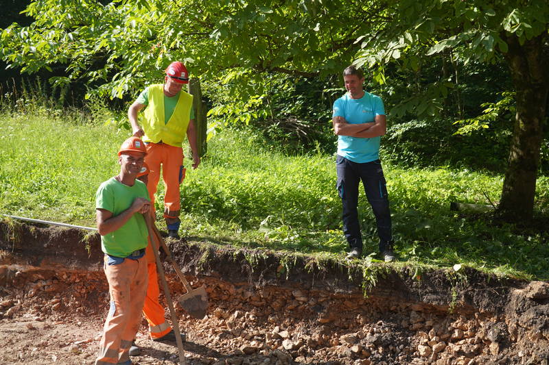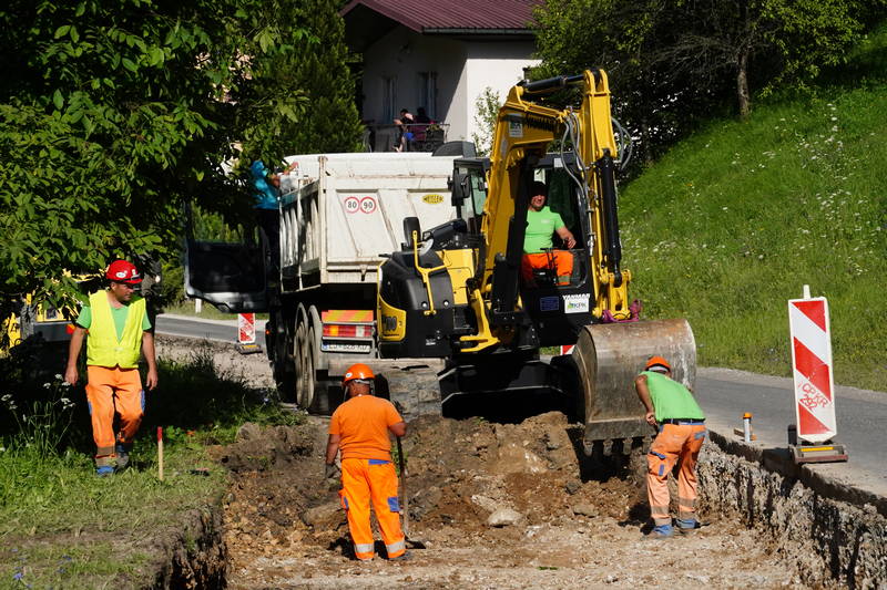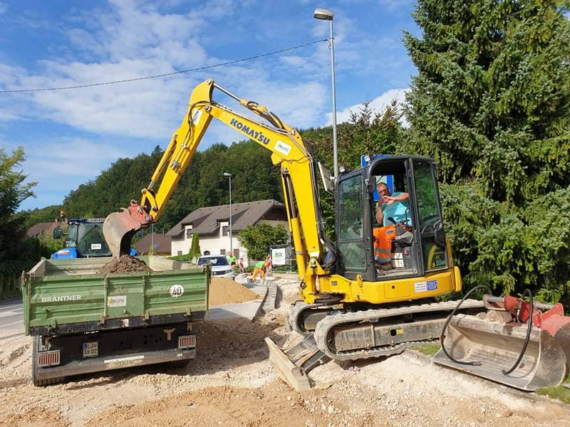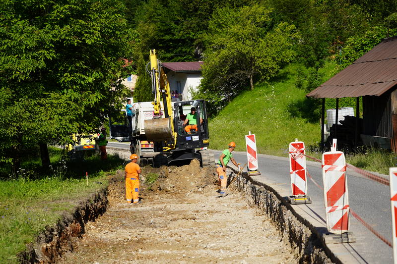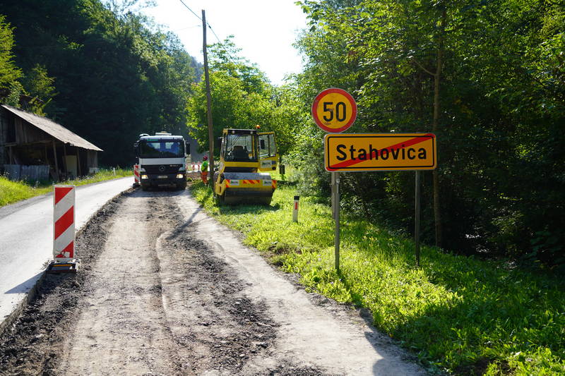 V Stahovici, kjer bosta urejena semaforizacija križišča ter obnova vozišča, je veselo. Z deli smo več kot pohiteli. Štartali smo v dveh smereh: proti Kamniški Bistrici, kjer smo začeli z izvedbo pločnika (50 m) in v smeri proti Gornjemu Gradu, kjer smo do konca tedna odstranili star asfalt, odkopali zemljino ter nasuli gramoz (okoli 150 m oz. približno polovica ceste).