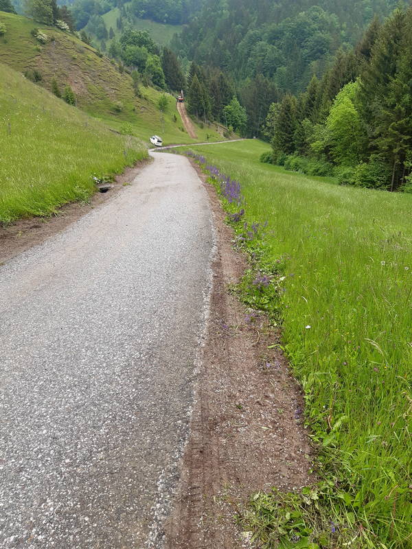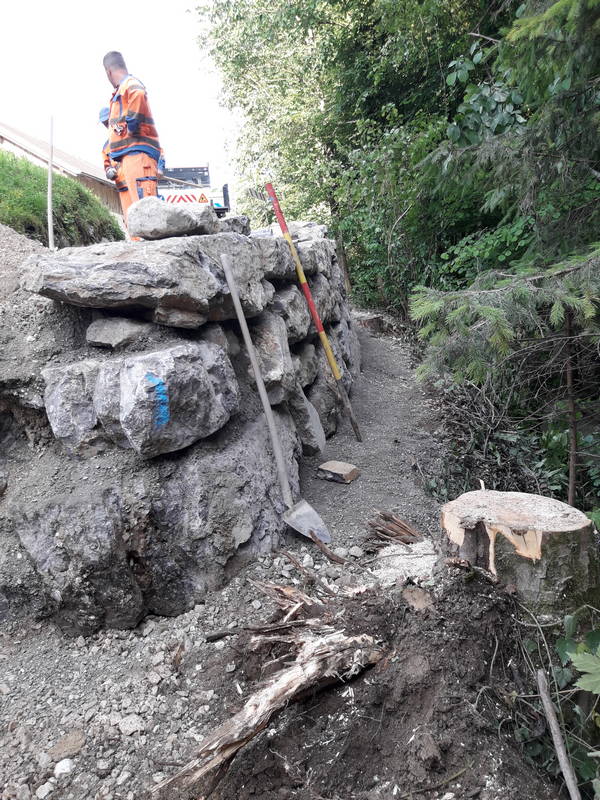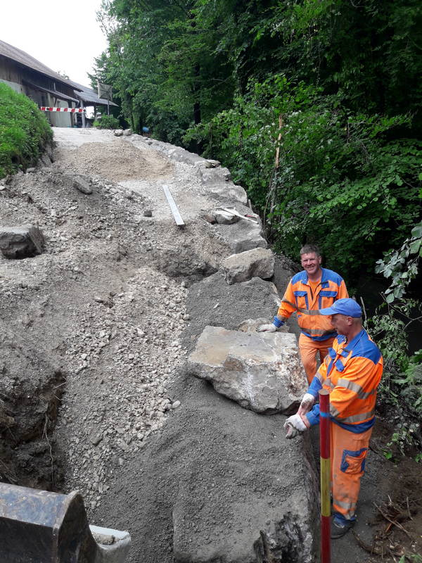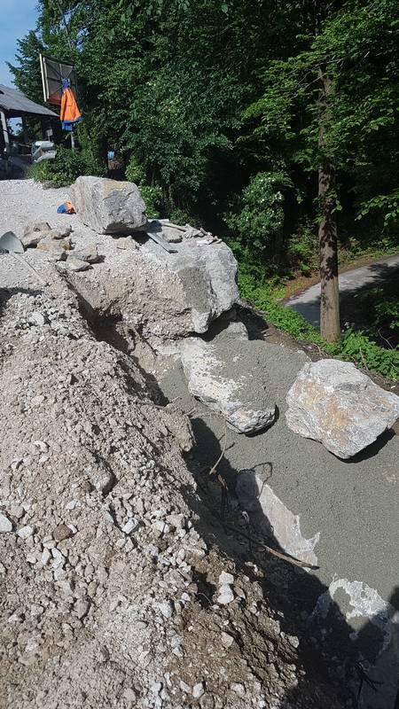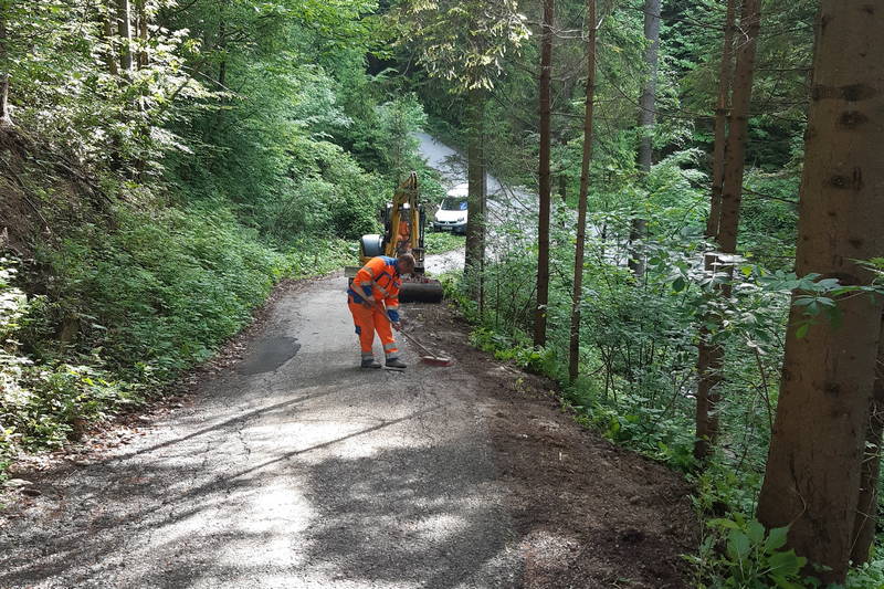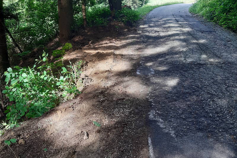 Nadaljujemo s sanacijo ceste Laniše – Stolnik. Urejanje brežine gre dobro od rok – izvedba opornega zidu (30 m) je gotova. V petek je že tekla priprava na asfalt, kar pomeni ureditev muld, gredanje in utrditev terena z valjarjem. Na zadnji ponedeljek v maju računamo na lepo vreme – po opravljenih geomehanski meritvah je namreč na vrsti le še asfaltiranje preostalega dela ceste (90 m).