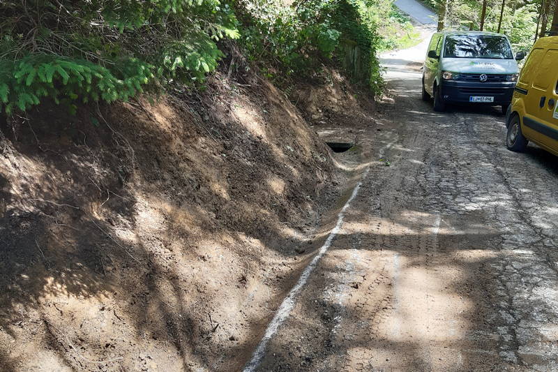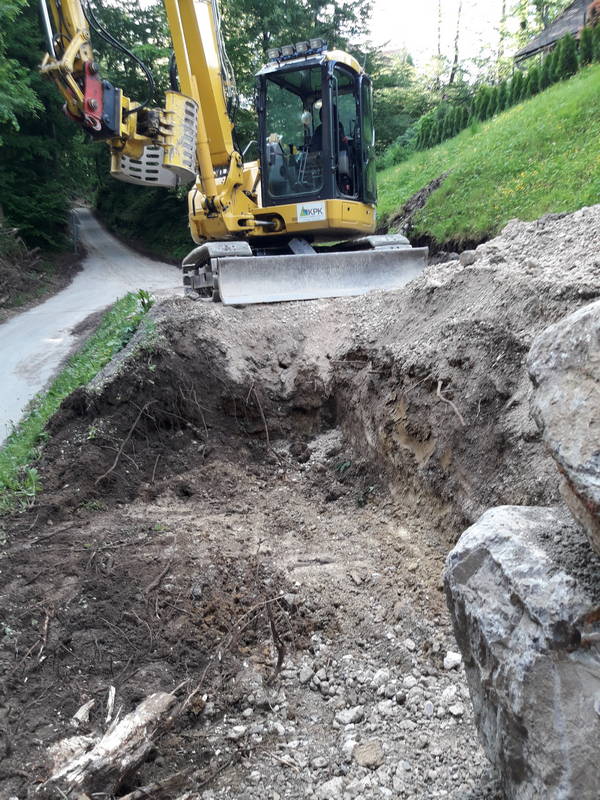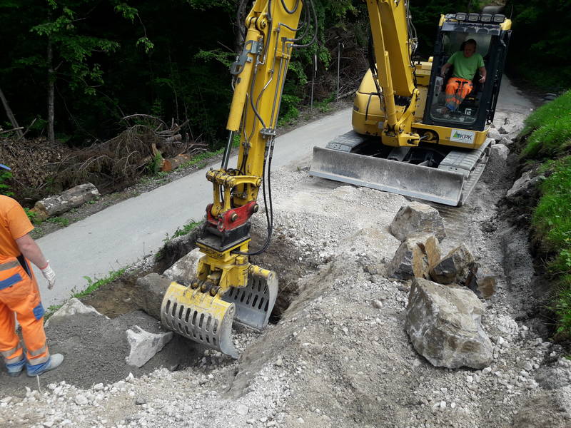 Zaključek prej omenjene sanacije pa je že napoved za nov podvig, in sicer sanacijo ceste Vrhovlje – Tunjice, od kjer se naša ekipa zadržuje že od 18. maja, ko je bila iz navedenega razloga postavljena tudi zapora ceste. V relativno kratkem času so bili, z namenom ureditve meteornih voda, izvedeni prepusti. V prihodnjem tednu se po izvedbi sondiranja, kot predpriprava na izkop, že planira pripravo na zaključno fazo saniranja oz. na asfaltiranje.