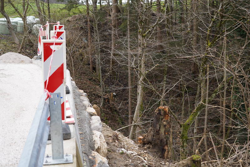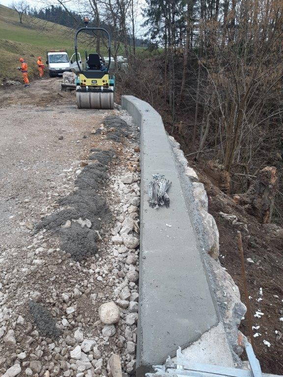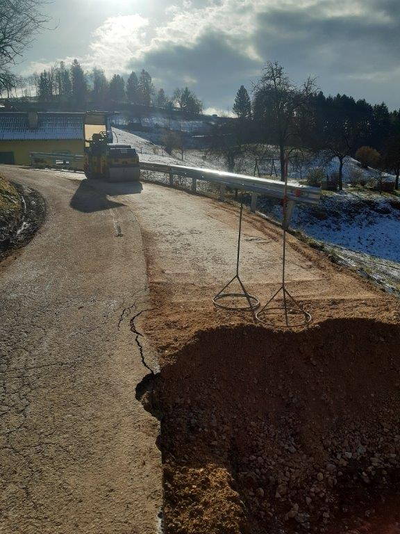 Proti koncu se biliža tudi sanacija cestnega usada na zahtevnem delu ceste od Laz proti zaselku Vrhač, kjer sta bili izvedeni iztočna glava za odvajanje voda, samo cestišče pa je bilo na novo nasuto in utrjeno.