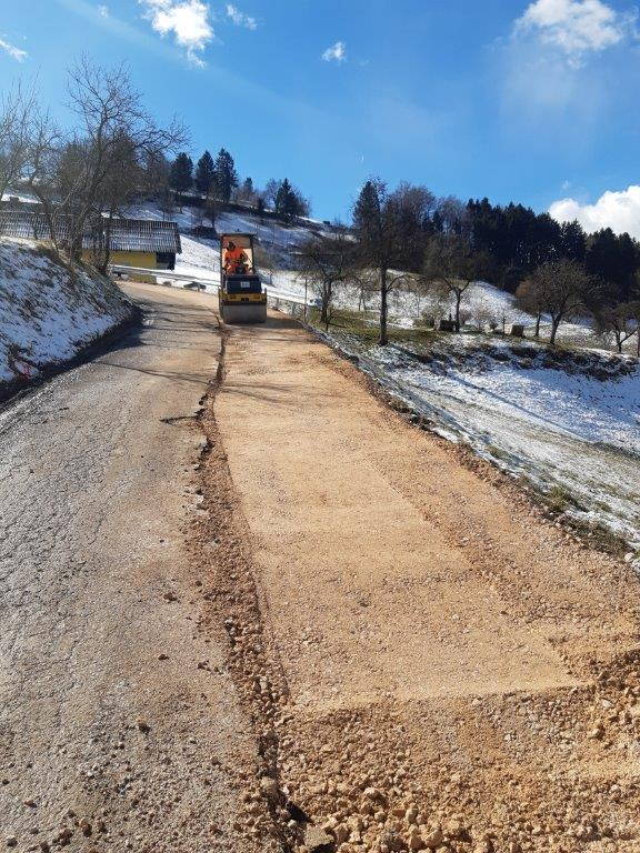 - Krpanje udarnih jam na makadamskih cestah: MARKOVO-ROŽIČNO, PRIMOŽEVA, BISTRIŠKA