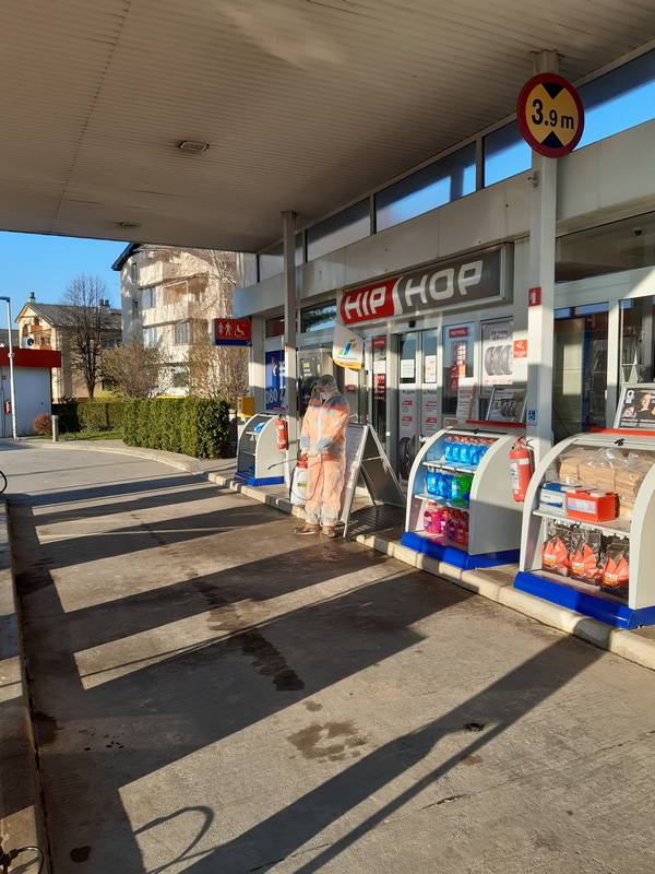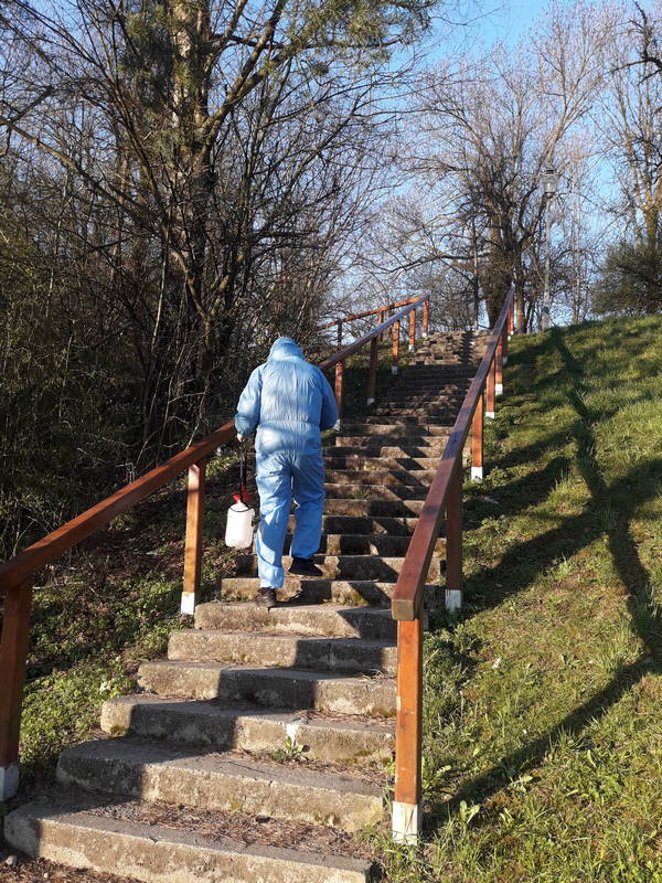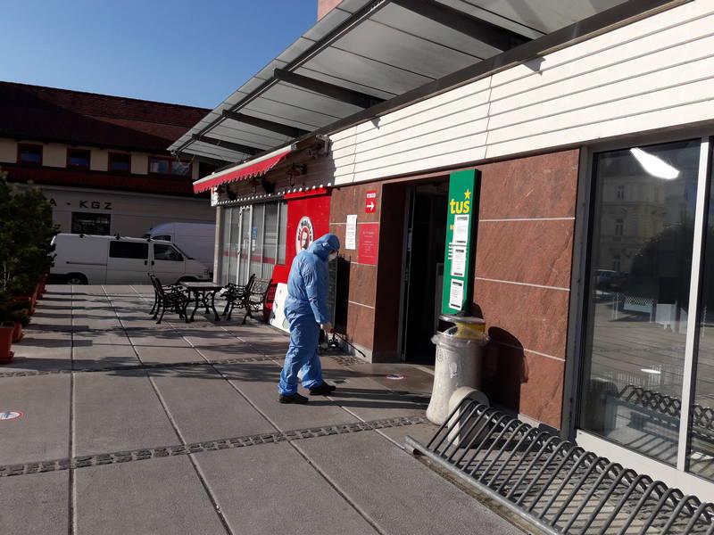 Poleg igrišč, klopi idr. so bili v ponedeljek zaščiteni vsi pitniki in fontane po mestu. Tekom tedna so se večkrat dekontaminirale vstopne točke vseh trgovin z živili, lekarn, bencinskih servisov, obeh pošt, bank in drugih zasebnih površin, kjer je pretočnost ljudi, tudi v času karantene, največja. V sredo in petek so bile na vrsti javne površine – stopnice, podhodi, avtobusne postaje, železniške postaje, ograje, tipke semaforjev, brvi in mostovi, zbirne točke pokopališč idr. Dela se izvajajo dosledno periodično, vse do preklica.