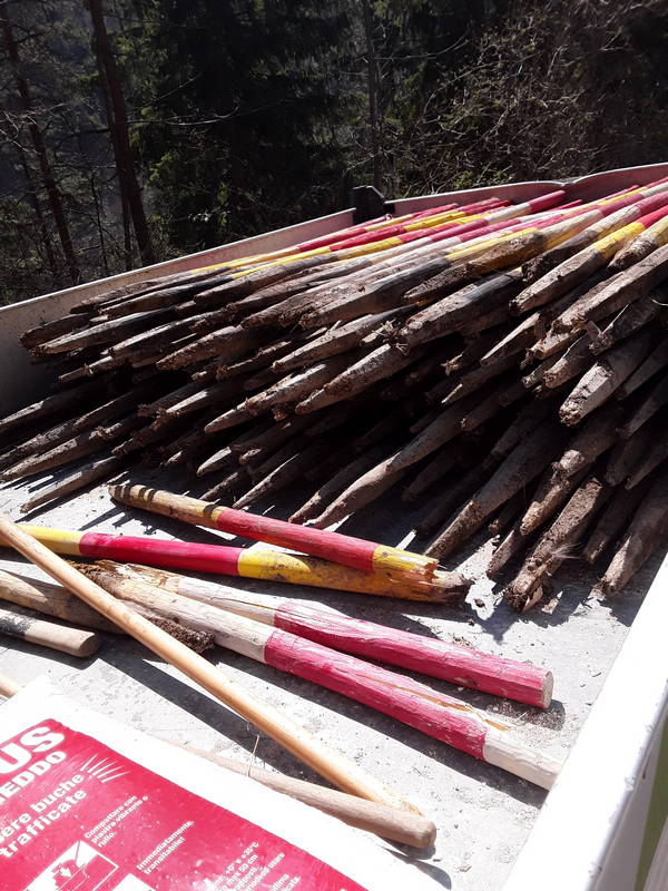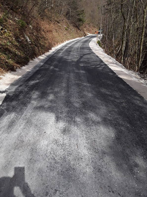 V začetku tedna je bilo še nekaj dela na ‘zimskem področju’. V ponedeljek smo plužili in posipali na relacijah Slope, Špitalič – Bela in Motnik – Okrog. V torek 31. 3. 20 nas je na cesto spravil še Gozd, kjer je bilo potrebno posipanje. Čeprav so vremenske razmere sodobnega časa velikokrat uganka, si upamo staviti, da je bil to tudi zadnji takšni poseg do pričetka zgodnje jeseni, ko bomo na plano spet rinili našo zimsko mašinerijo – nenazadje se je zimska sezona uradno iztekla že s 15. marcem. Če smo v začetku tedna še plužili, pa smo konec tedna že pričeli s pobiranjem snežnih kolov. Rdeče-rumenih okrasov so se znebile ceste Buč, Hruševka, Praproče, Kozjak, Zajasovnik, Okrog, Špitalič, Motnik, Zajasovnik in druge. Preglednik cest je na vseh relacijah, kjer je bilo to potrebno, pokrpal čez zimo nastale luknje. V drugem tednu pobiramo zimsko opremo na območju Krivčevega in Kranjskega Raka. S hladno maso smo krpali tudi Kregarjeve, Tunjiške in Laniške ceste.