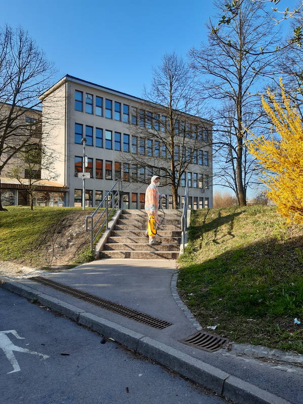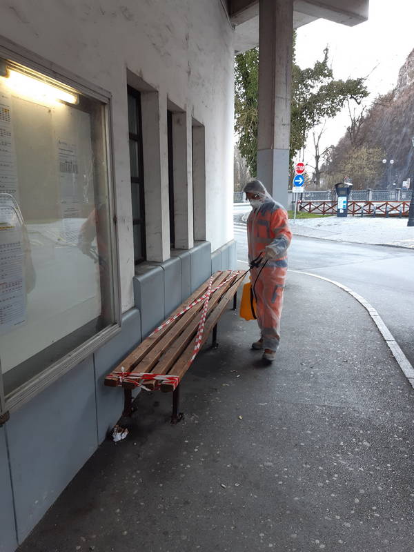 Za konec naj omenimo še nekaj del s področja, na žalost, še vedno aktualne teme. Dekontaminacija zasebnih in javnih površin, ki se izvaja v sodelovanju z Občinskim štabom Civilne zaščite Kamnik, se izvaja že vse od pričetka pojava virusa v občini Kamnik. Poleg razkuževanja smo izvedli dodatno zaščito infrastrukture javnih površin.
