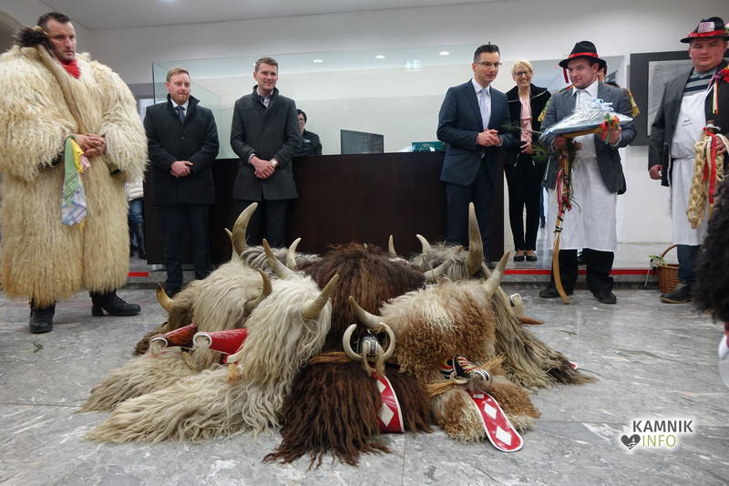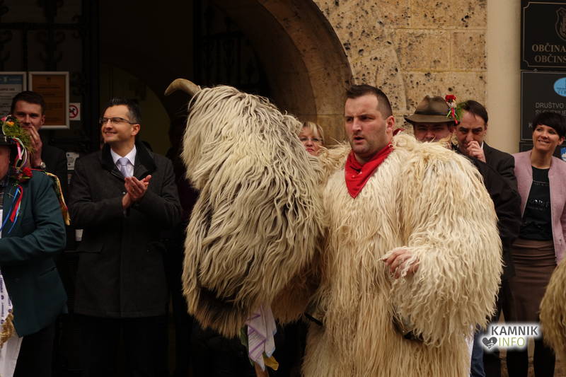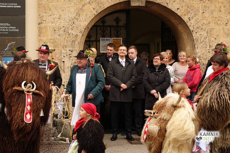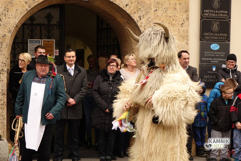 Obisk pustnih likov z Dravskega polja v Kamniku je postal že kar tradicionalen, saj se koranti, pokači in orači v predpustnem času oglasijo vsako leto. Tudi letos jih je že pred vrati pričakal in sprejel občinski »gospodar«, ki je glasno druščino prinašalcev pomladi povabil tudi v občinsko hišo na manjše okrepčilo.